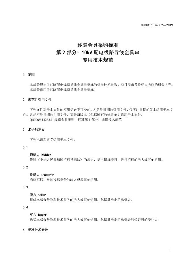 Q/GDW 13263.2-2019 线路金具采购标准 第2部分:10kV配电线路导线金具串专用技术规范