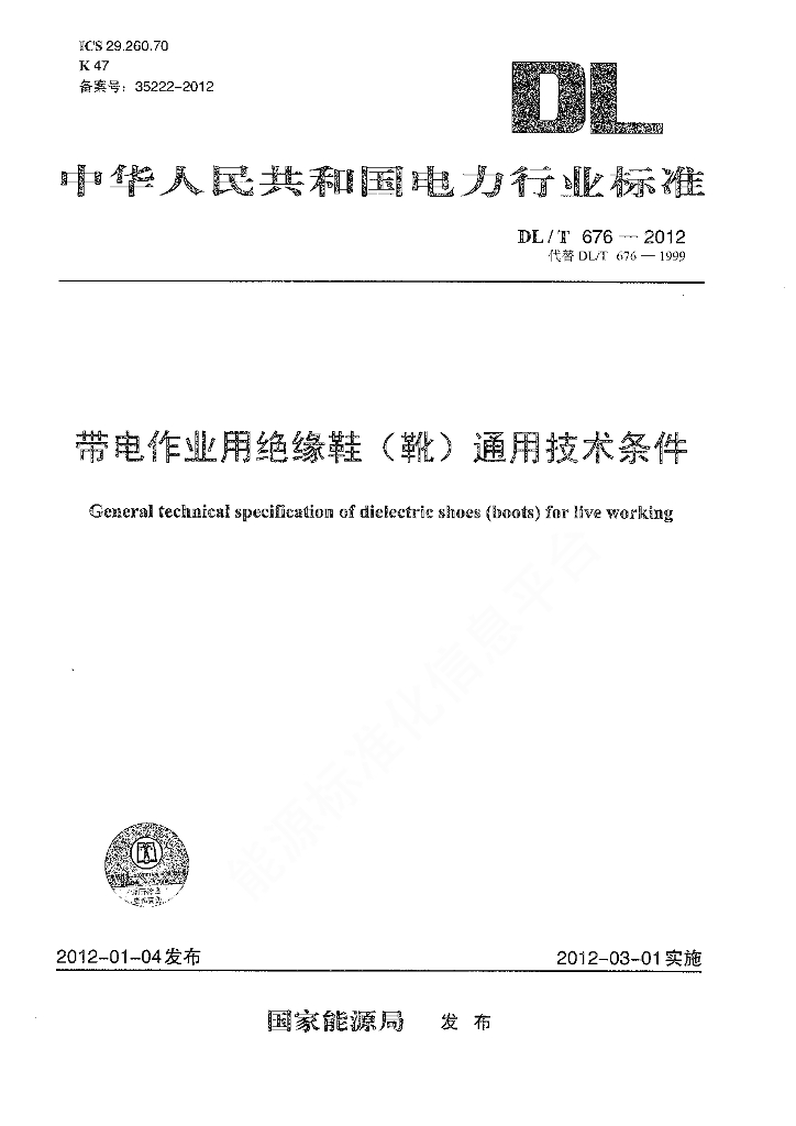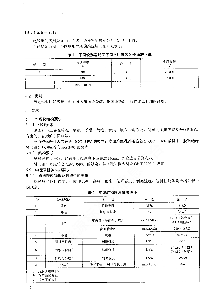 DL/T 676-2012 带电作业用绝缘鞋(靴)通用技术条件