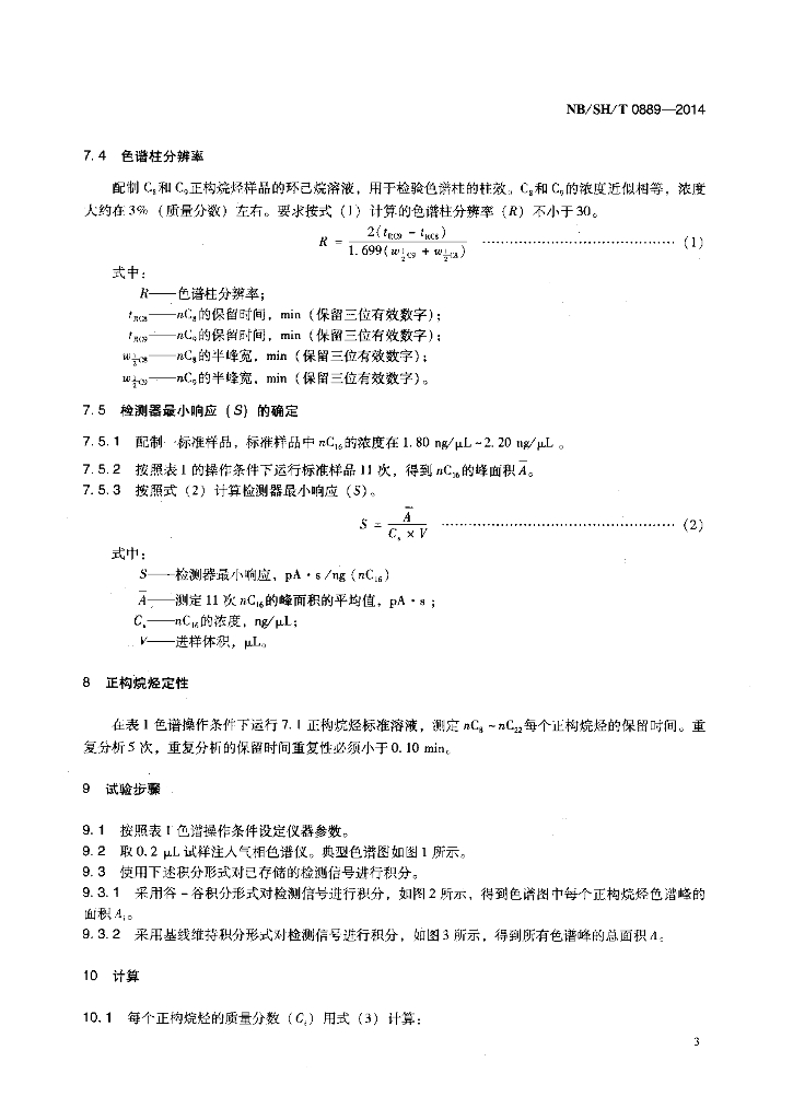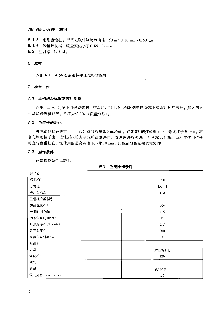 NB/SH/T 0889-2014 液体石蜡产品和原料正构烷烃含量及碳数分布的测定 气相色谱法