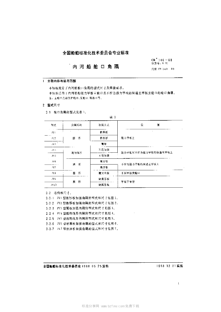 CB 140-1988 内河船舱口角隅