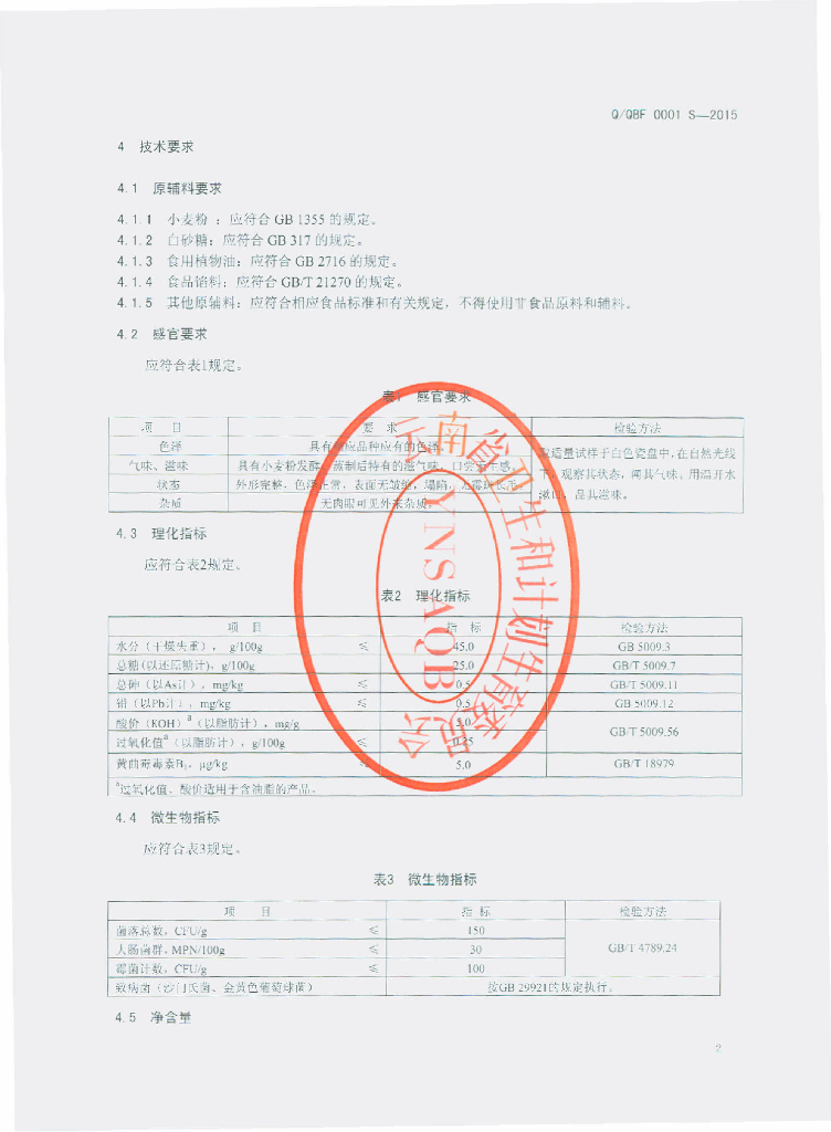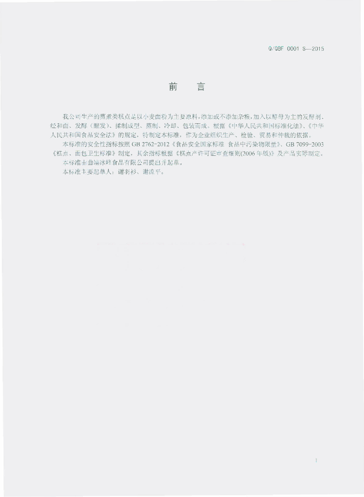 Q/QBF 0001S-2015 曲靖冰峰食品有限公司 蒸煮类糕点