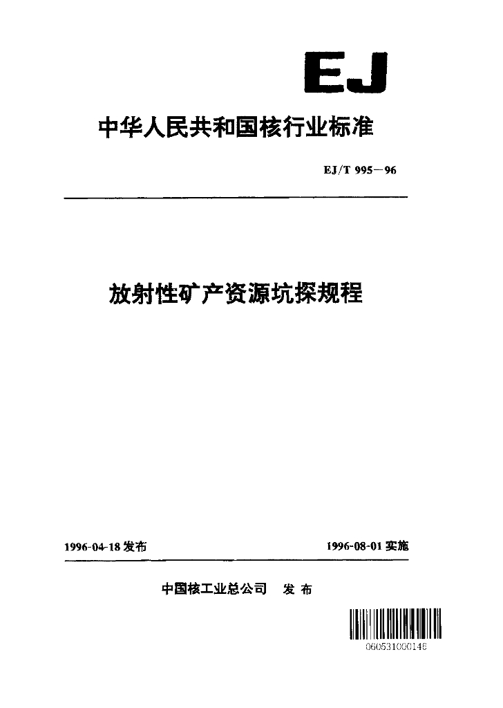 EJ/T 995-1996 放射性矿产资源坑探规程