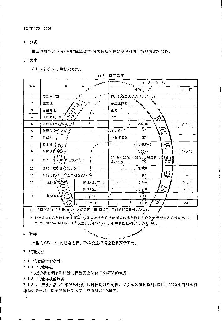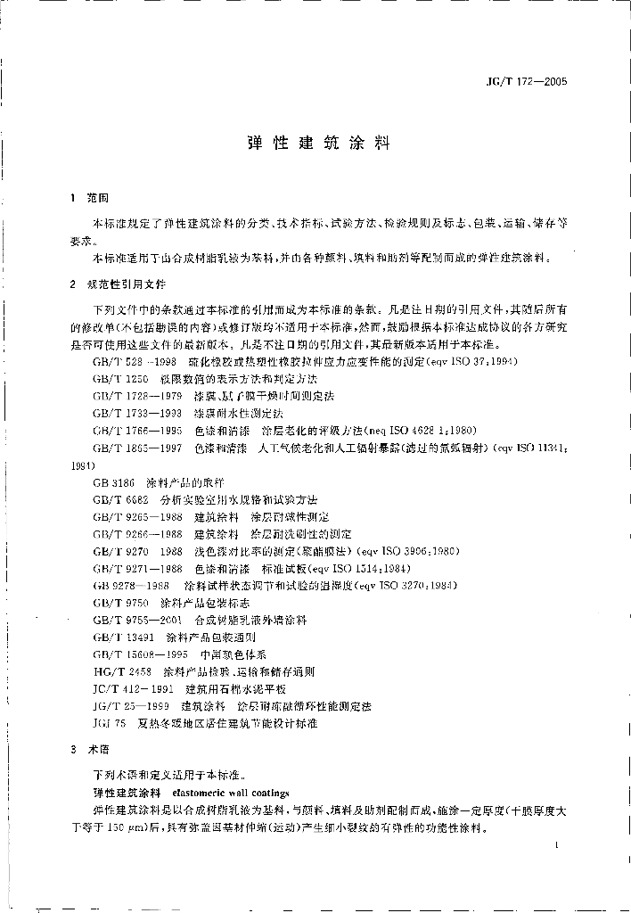 JG/T 172-2005 弹性建筑涂料
