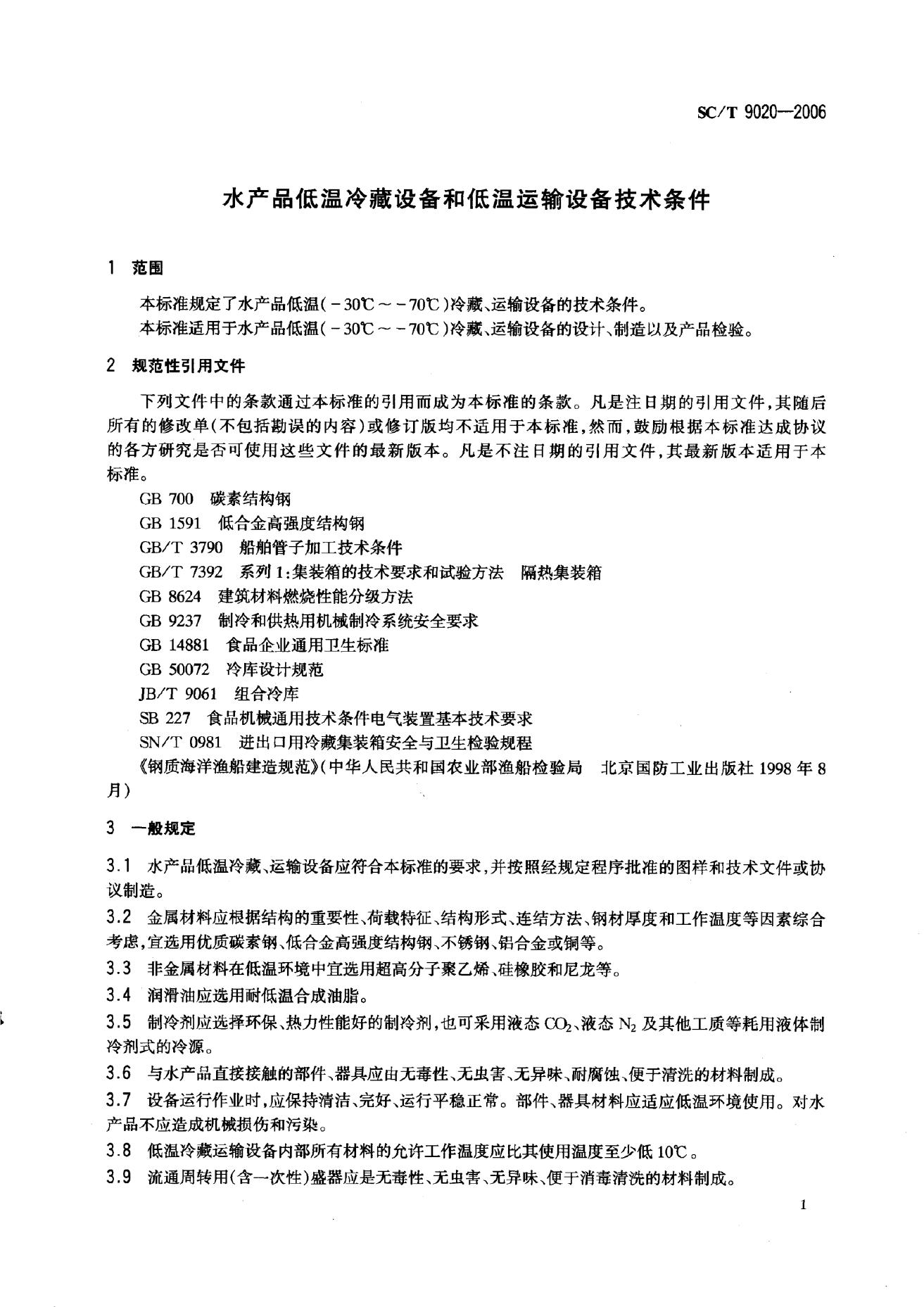 SC/T 9020-2006 水产品低温冷藏设备和低温运输设备技术条件