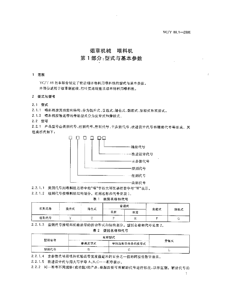 YC/T 88.1-2006 烟草机械 喂料机 第1部分:型式与基本参数