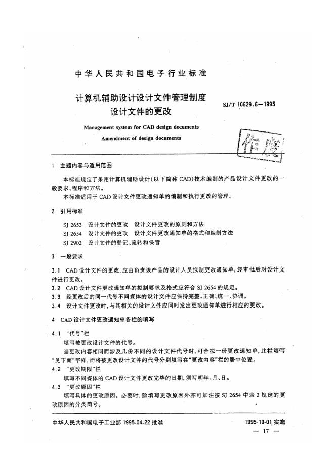 SJ/T 10629.6-1995 计算机辅助设计设计文件管理制度设计文件的更改