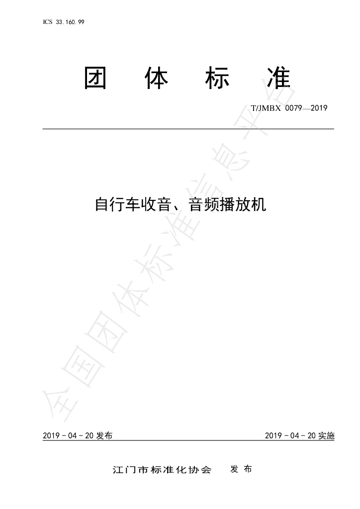 T/JMBX 0079-2019 自行车收音、音频播放机 2019