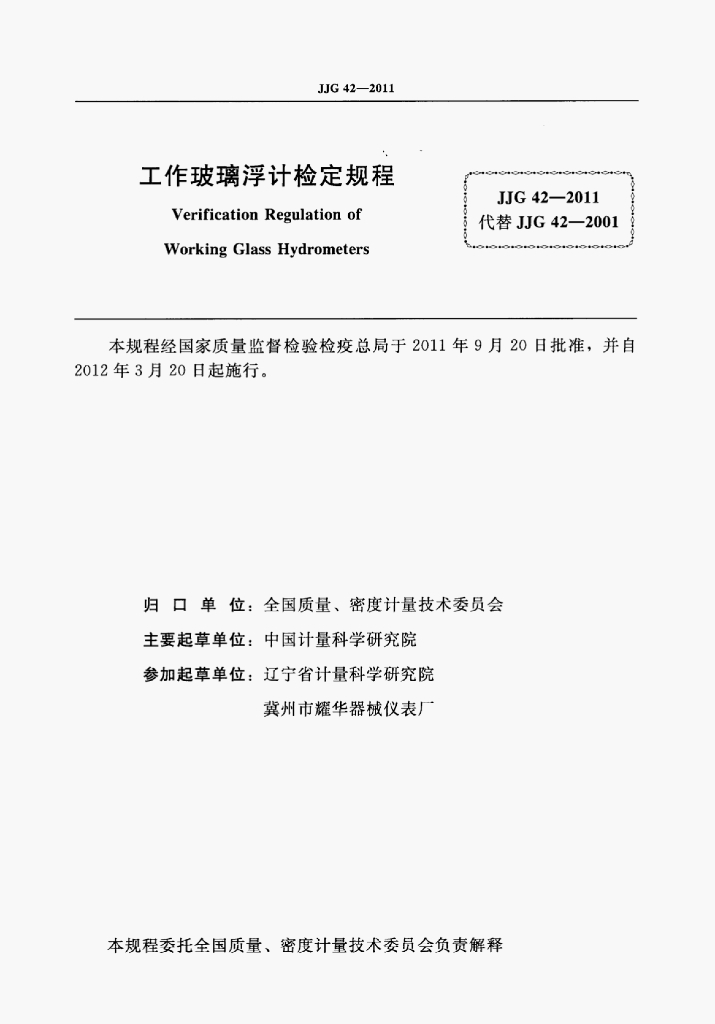 许常红(中国计量科学研究院)、陈朝晖(中国计量科学研究院)、顾英姿(中国计量科学研究院)、孟淑燕(辽宁省计量科学研究院)、徐彦发(冀州市耀华器械仪表厂)