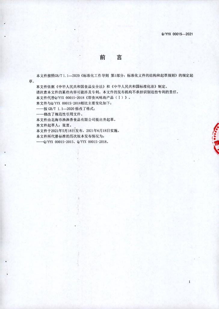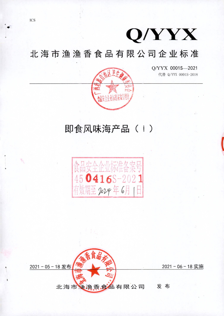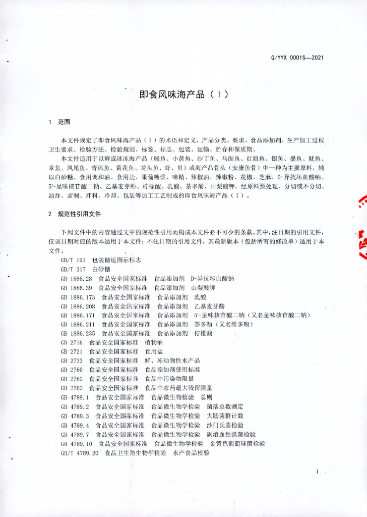 Q/YYX 0001S-2021 即食风味海产品(I)