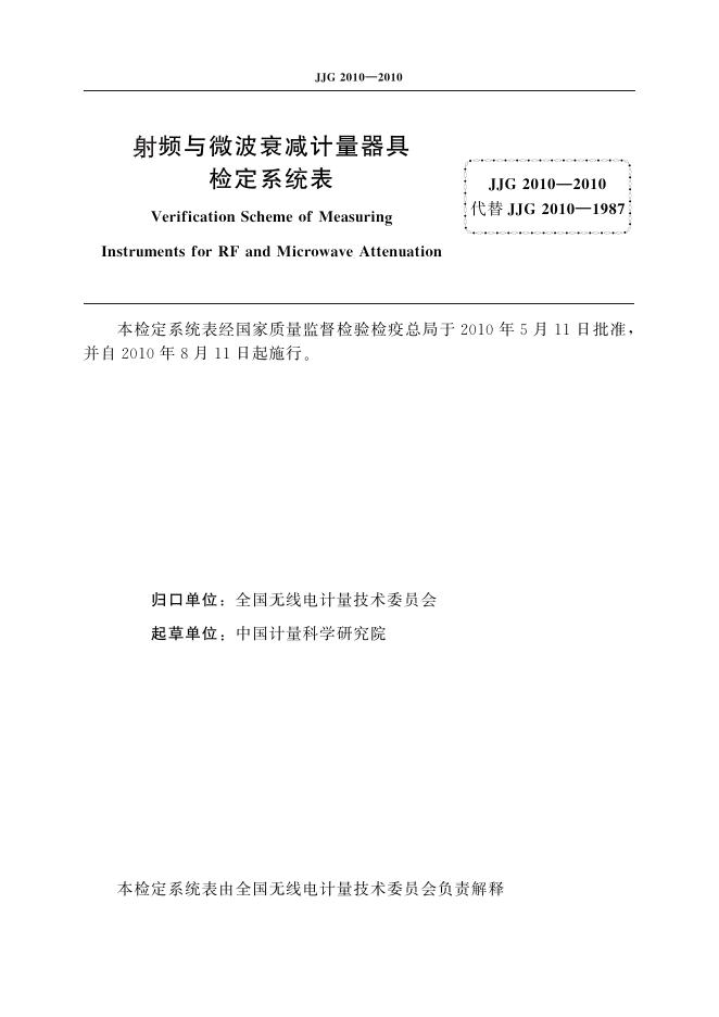 JJG 2010-2010 射频与微波衰减计量器具检定系统表