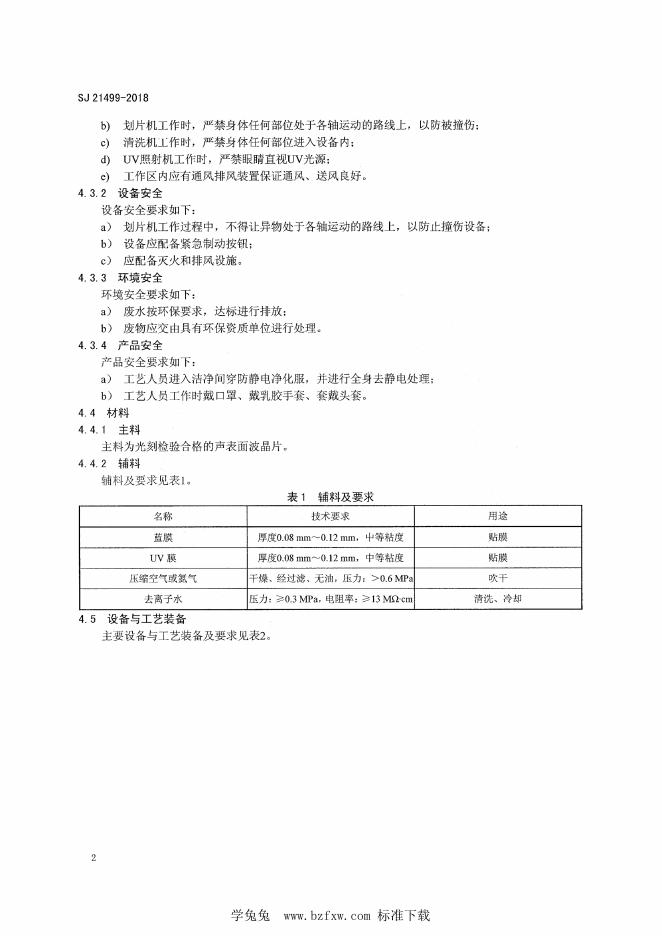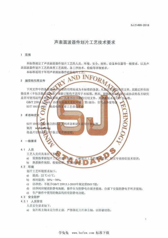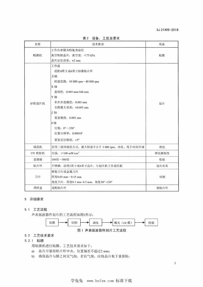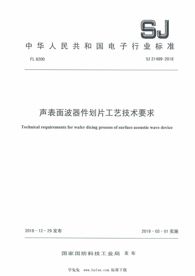 SJ 21499-2018 声表面波器件划片工艺技术要求