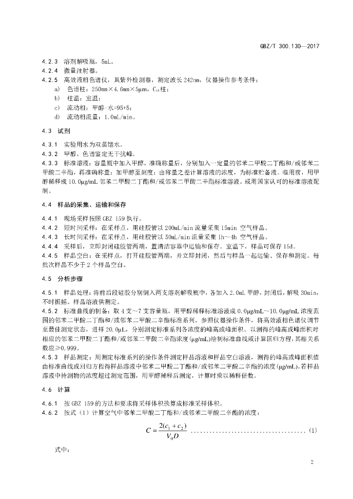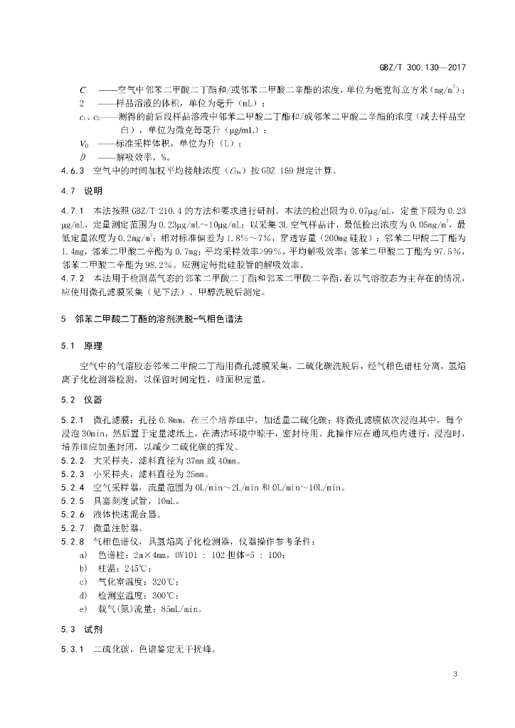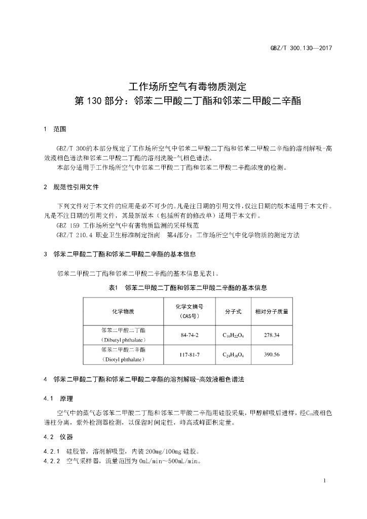 GBZ/T 300.130-2017 工作场所空气有毒物质测定 第130部分:邻苯二甲酸二丁酯 和邻苯二甲酸二辛酯
