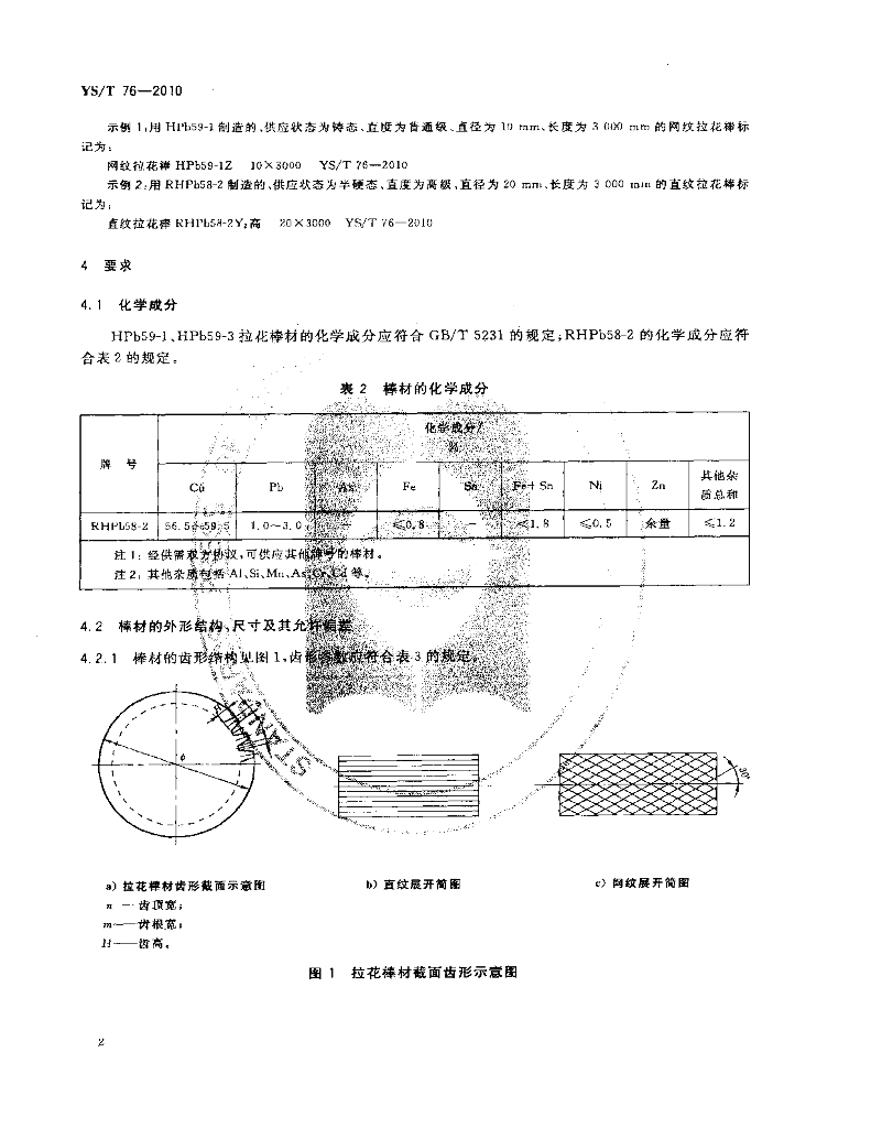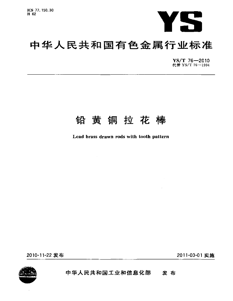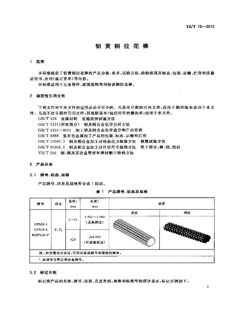 YS/T 76-2010 铅黄铜拉花棒