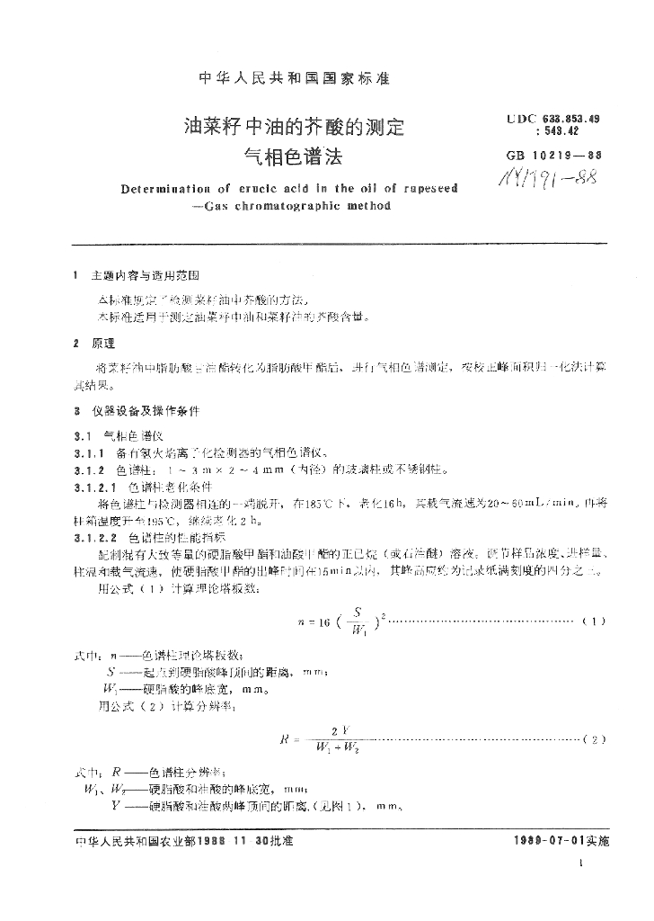 NY/T 91-1988 油菜籽中油的芥酸的测定 气相色谱法