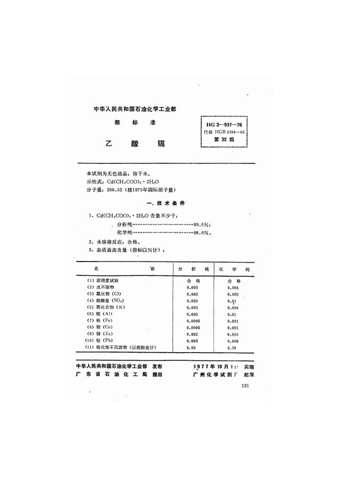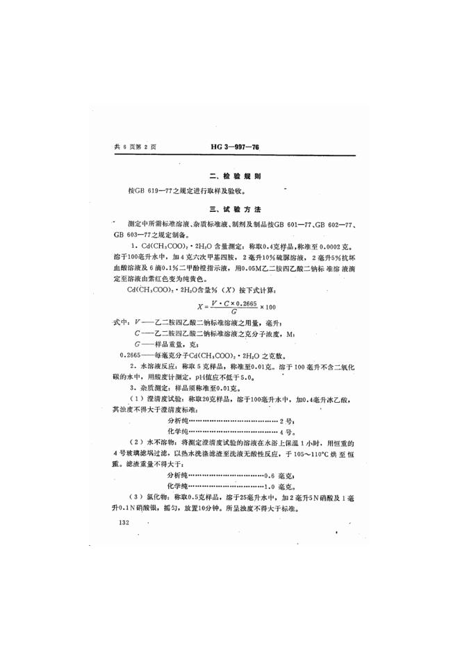 HG 3-997-1976 化学试剂 乙酸镉