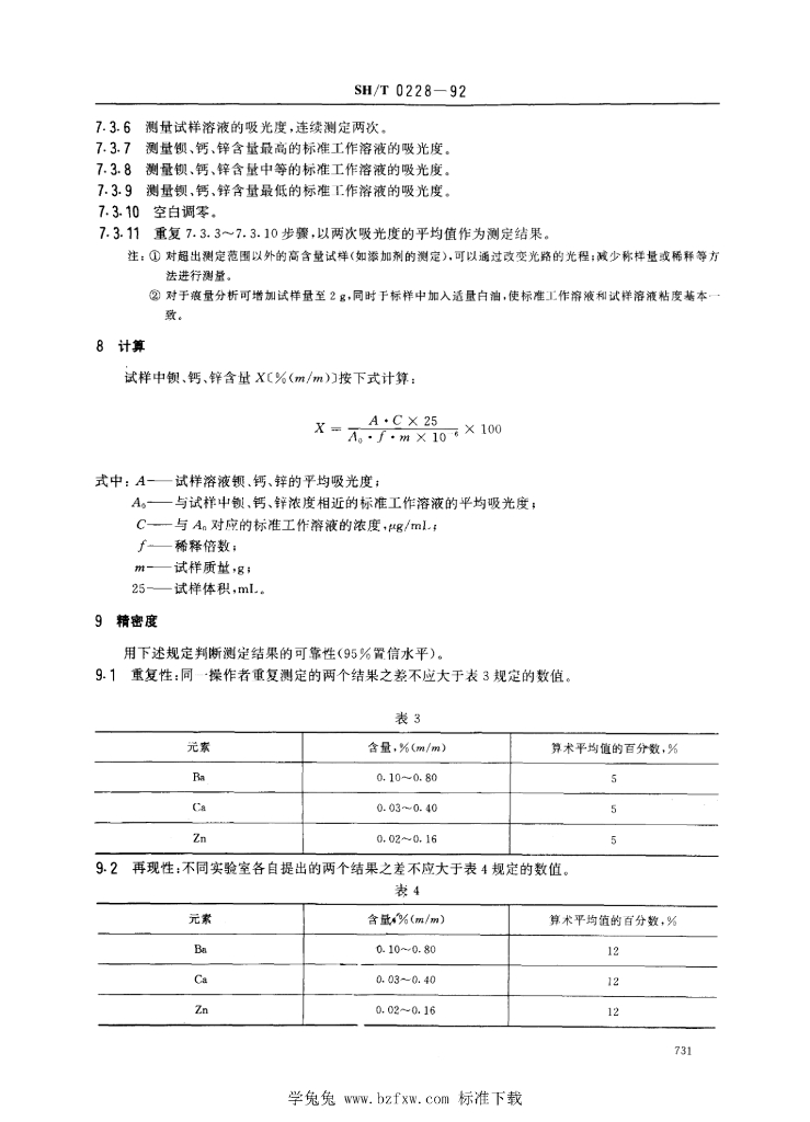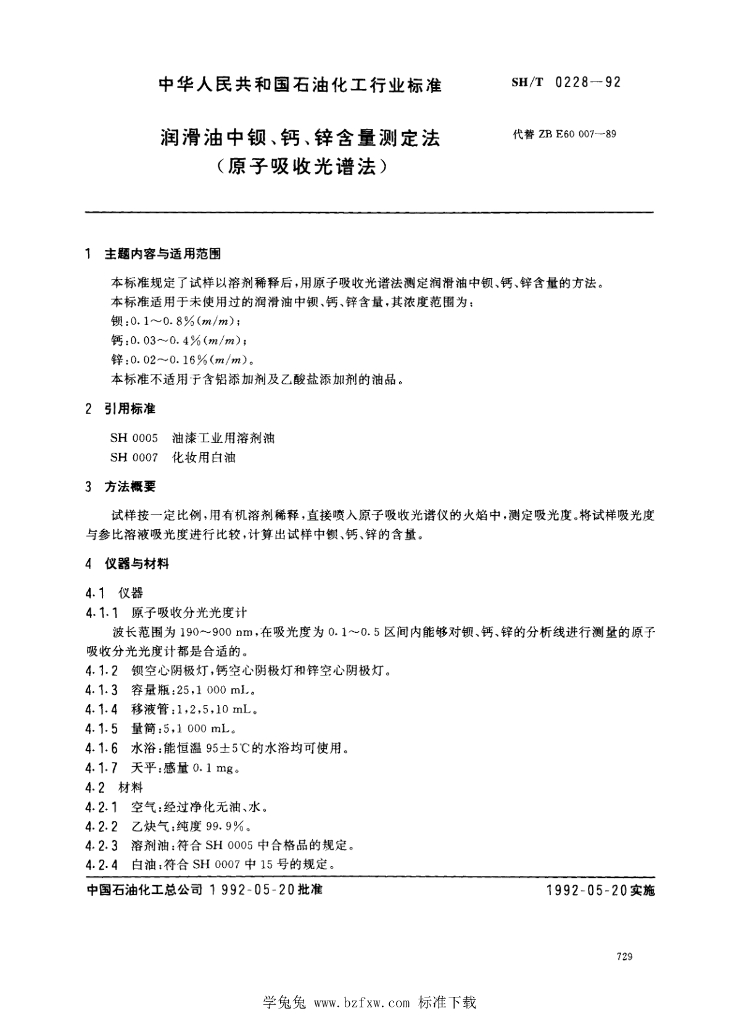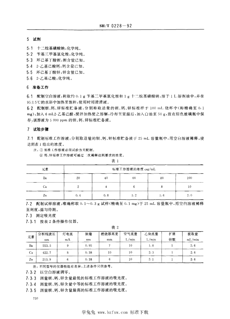 SH/T 0228-1992 润滑油中钡、钙、锌含量测定法(原子吸收光谱法)