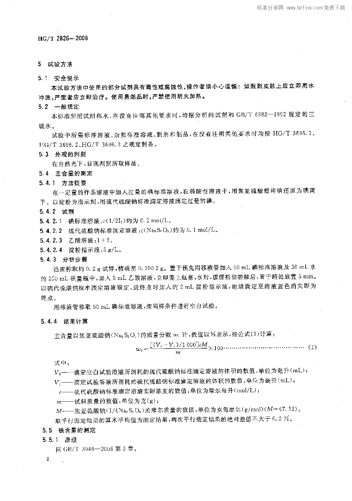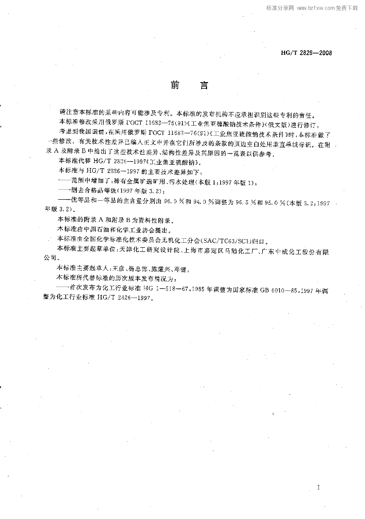 HG/T 2826-2008 工业焦亚硫酸钠