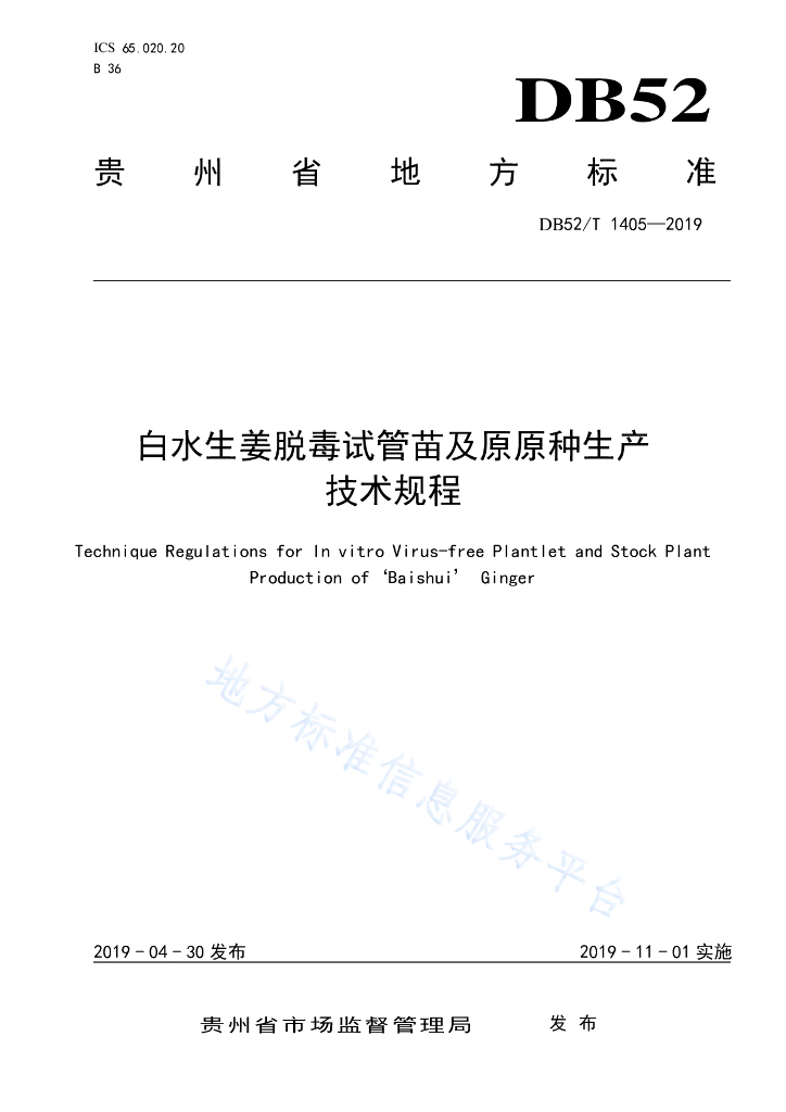 DB52/T 1405-2019 白水生姜脱毒试管苗及原原种生产技术规程