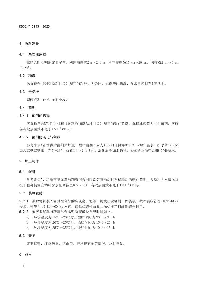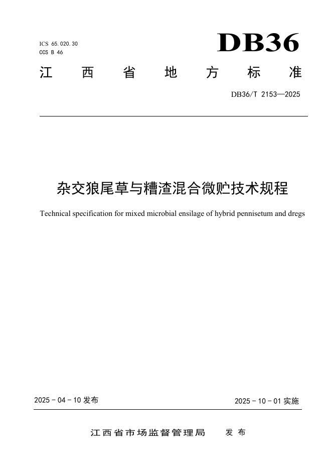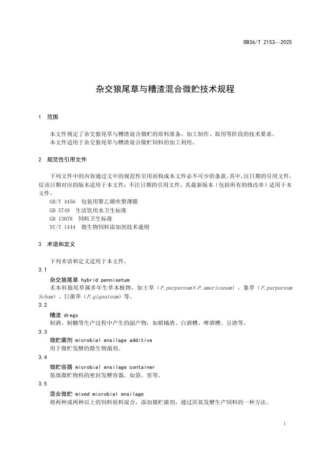 DB36/T 2153-2025 杂交狼尾草与糟渣混合微贮技术规程