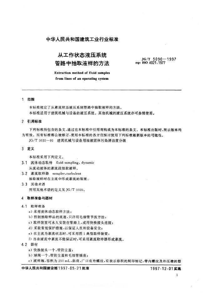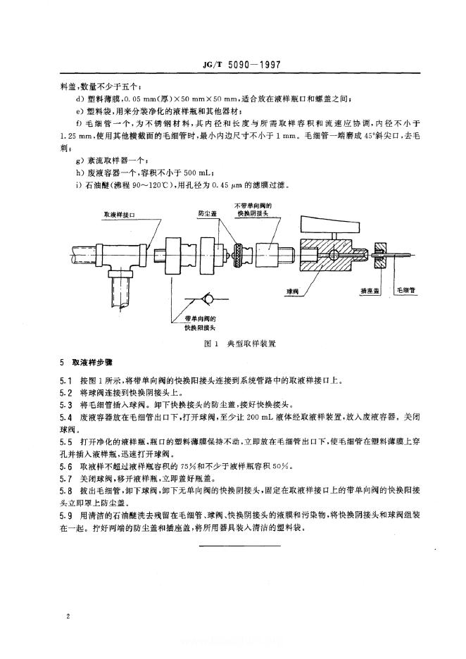JG/T 5090-1997 从工作状态液压系统中抽取液样的方法