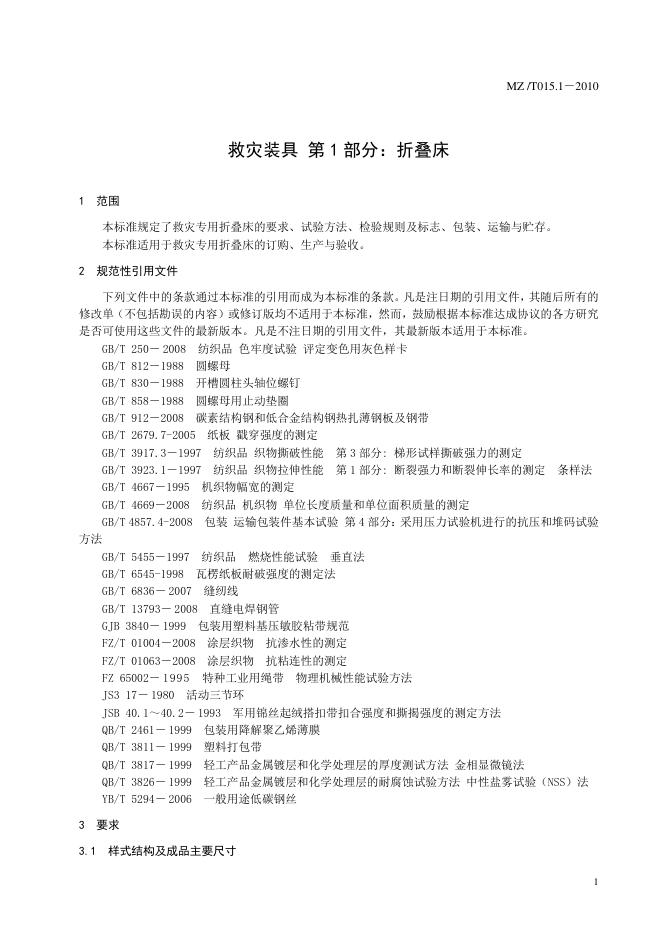 MZ/T 015.1-2010 救灾装具 第1部分:折叠床