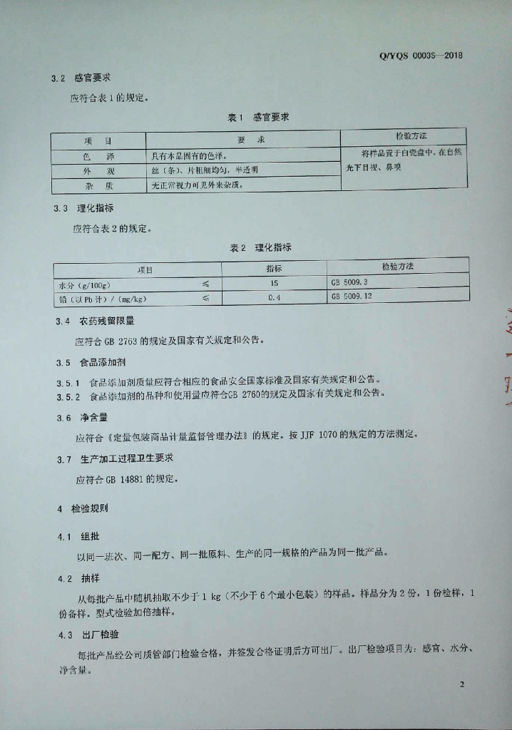 Q/YQS 0003S-2018 淀粉制品