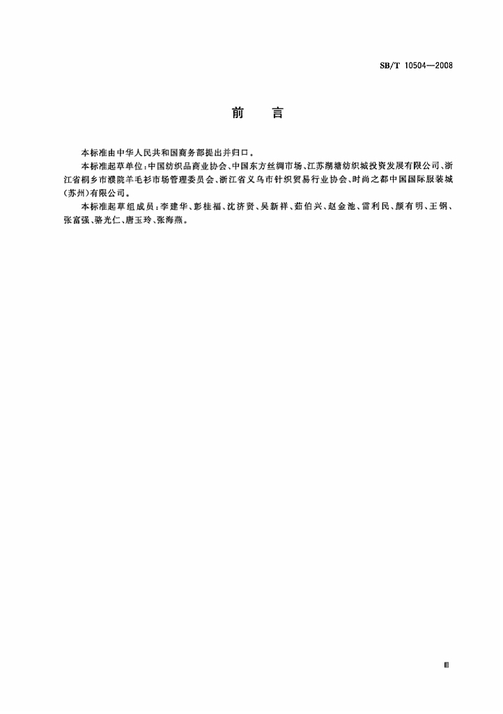 SB/T 10504-2008 纺织服装专业市场建设及管理技术规范