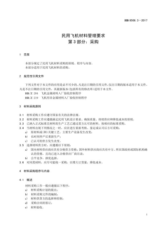HB 8508.3-2017 民用飞机材料管理要求 第3部分:采购