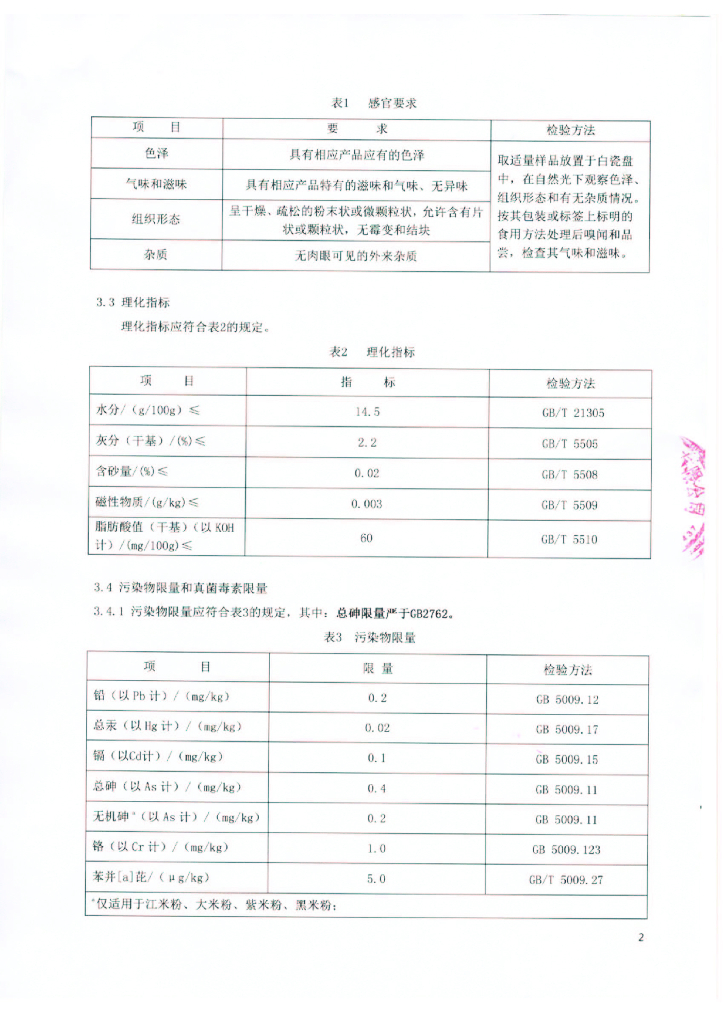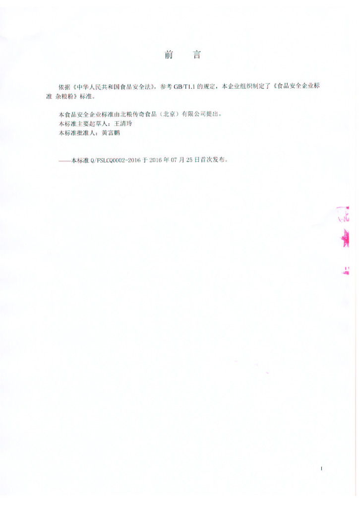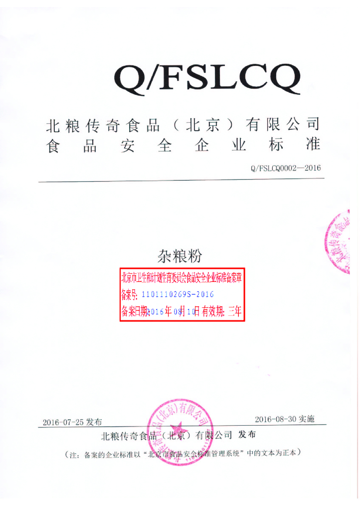 Q/FSLCQ 0002-2016 北粮传奇食品(北京)有限公司 杂粮粉
