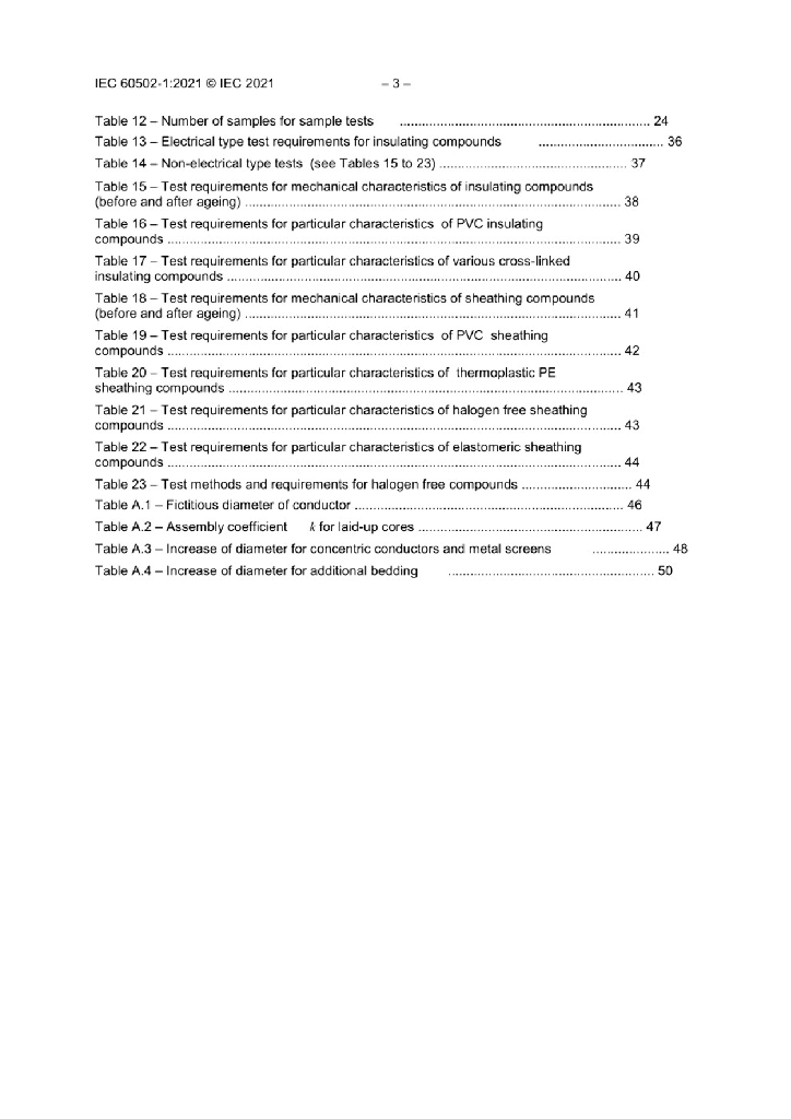 IEC 60502-1:2021 额定电压1kV(Um=1.2kV)到30kV(Um=36kV)挤包绝缘电力电缆及附件 第1部分 额定电压1kV(Um=1.2 kV)和3kV(Um=3.6kV)电缆