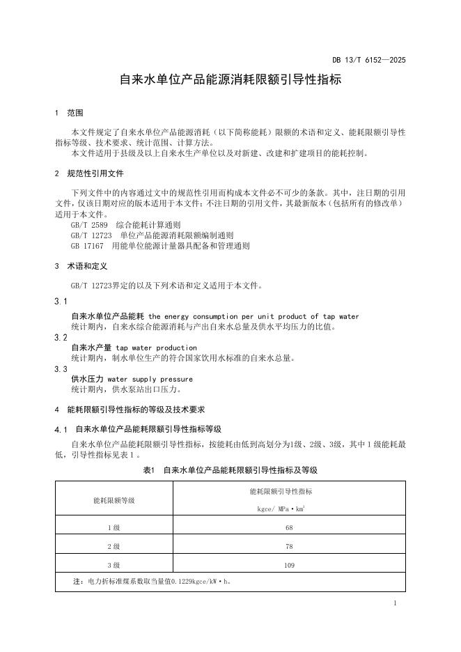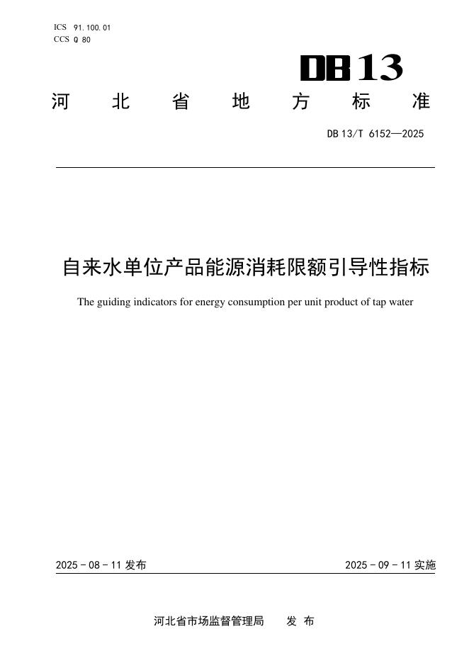 DB13/T 6152-2025 自来水单位产品能源消耗限额引导性指标