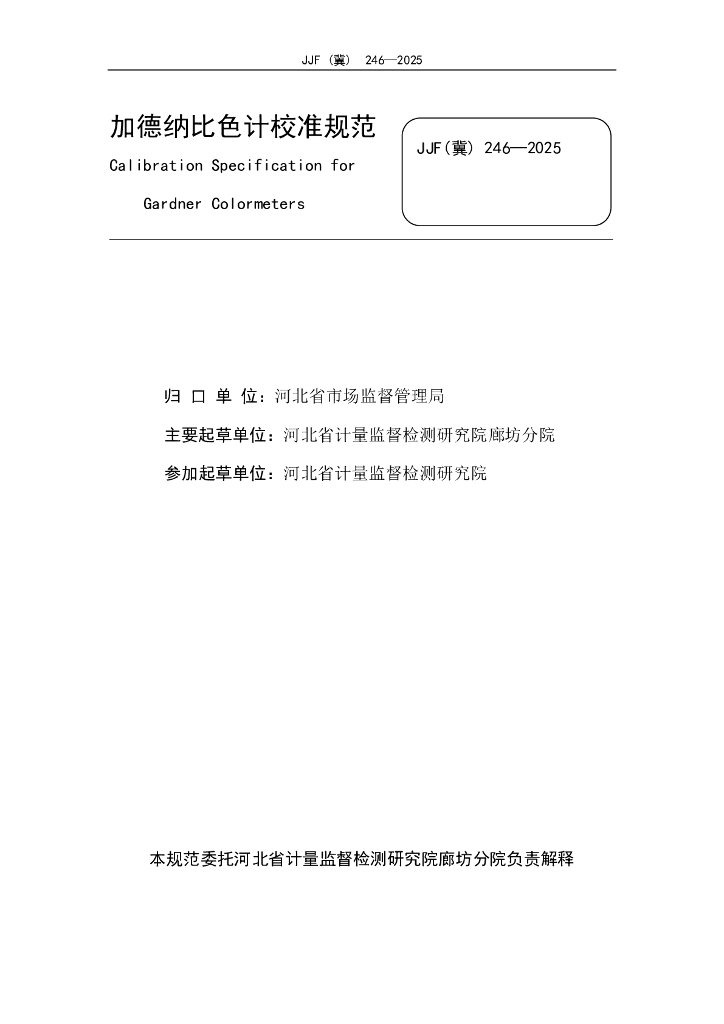 JJF(冀)246-2025 加德纳比色计校准规范
