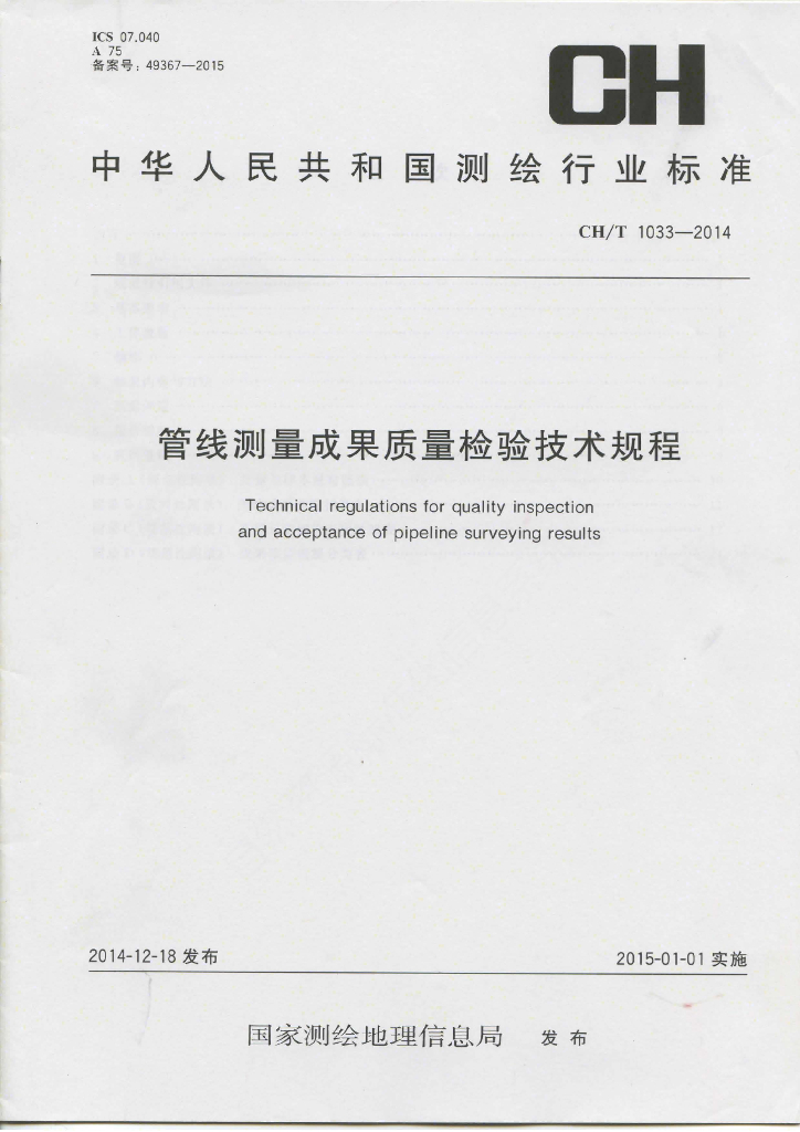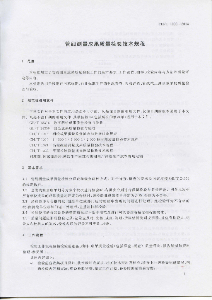 CH/T 1033-2014 管线测量成果质量检验技术规程