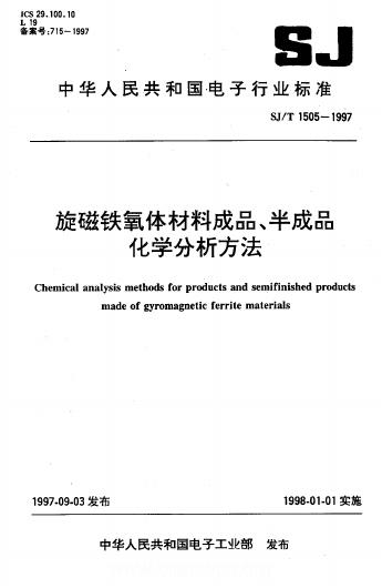SJ/T 1015-1997 旋磁铁氧体材料成品、半成品化学分析方法