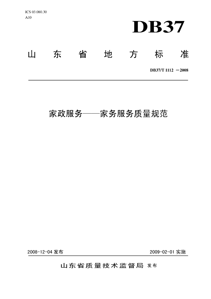DB37/T 1112-2008 家政服务-家务服务质量规范