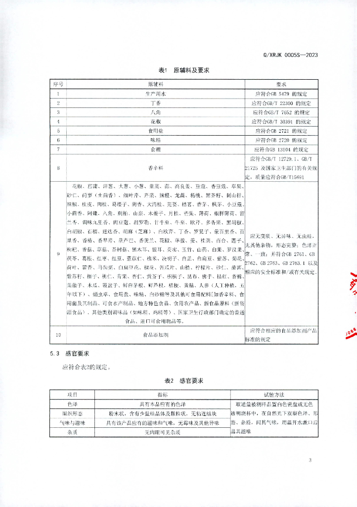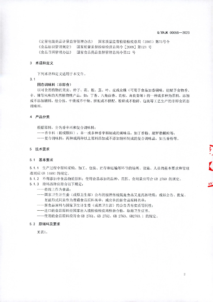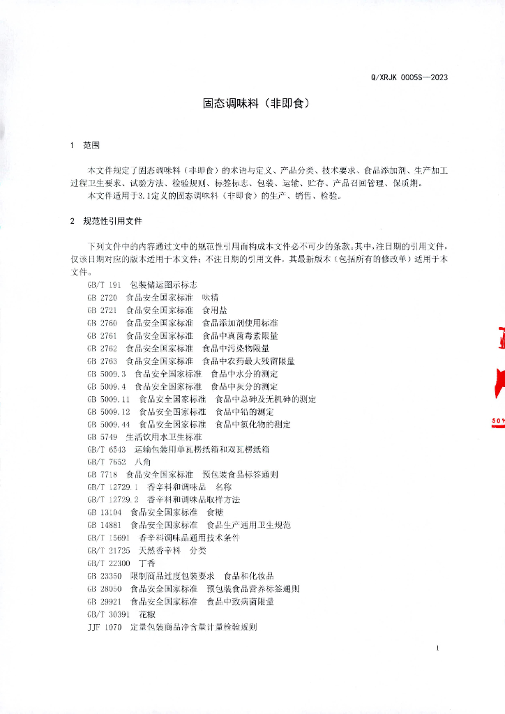 Q/XRJK 0005S-2023 固态调味料(非即食)
