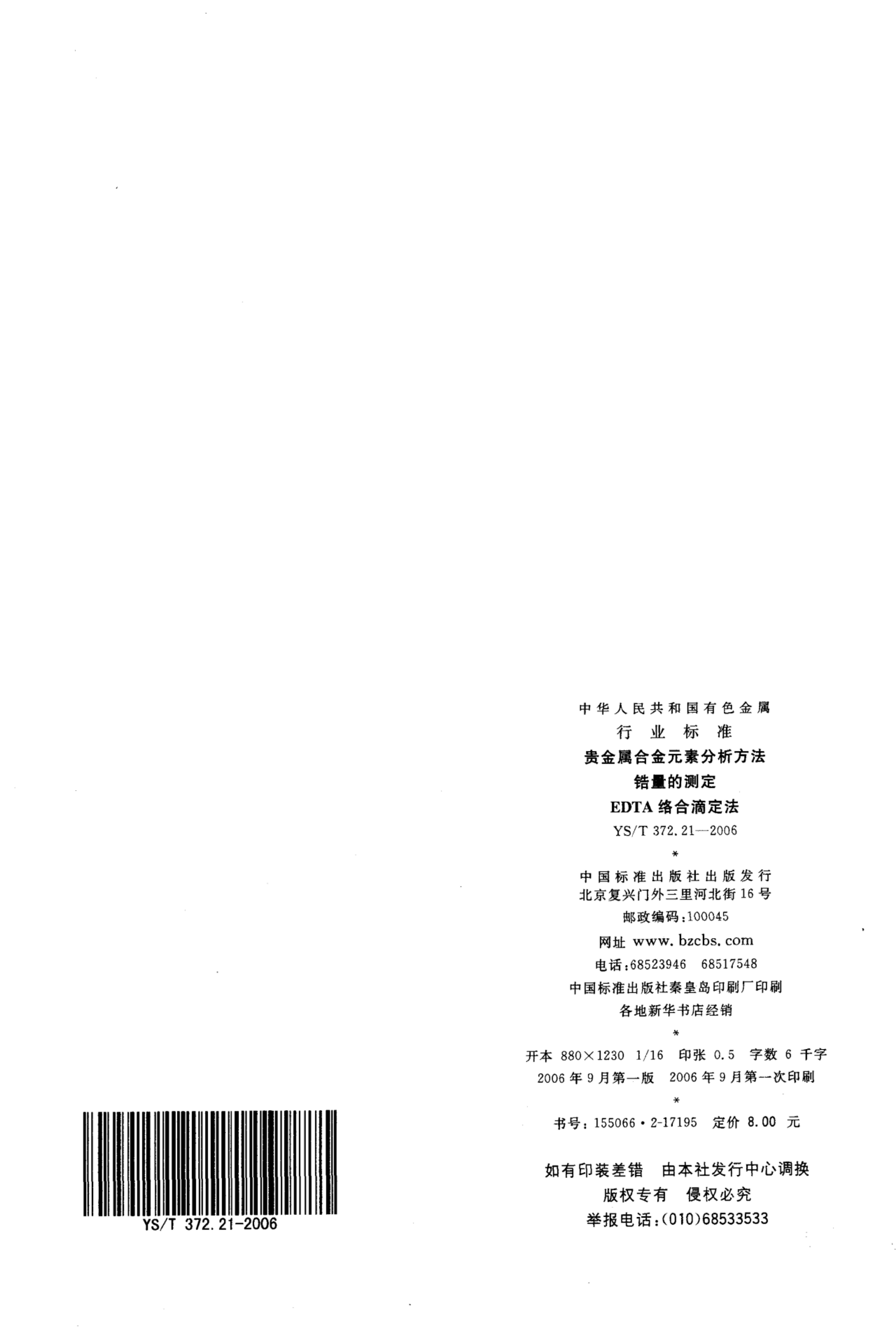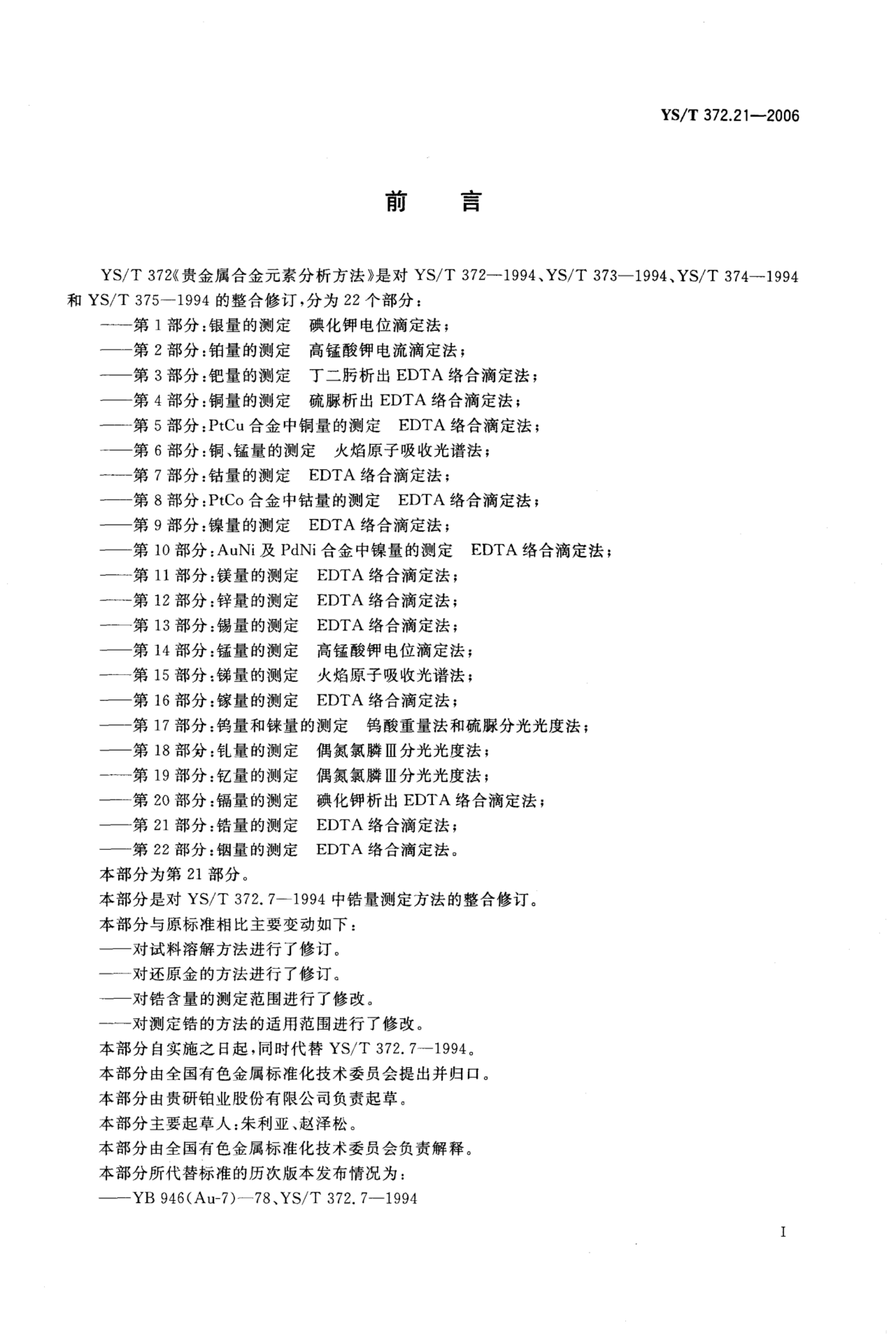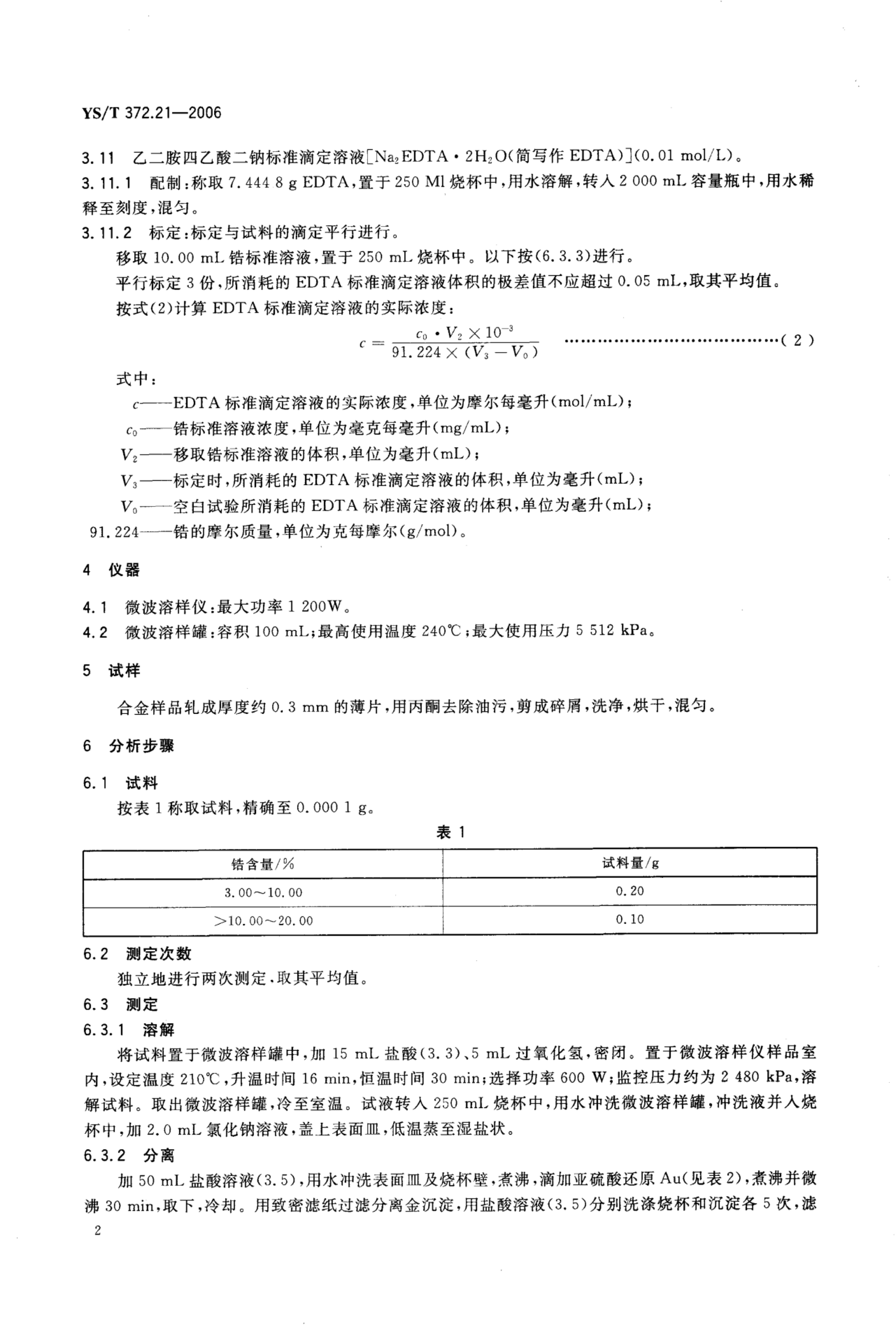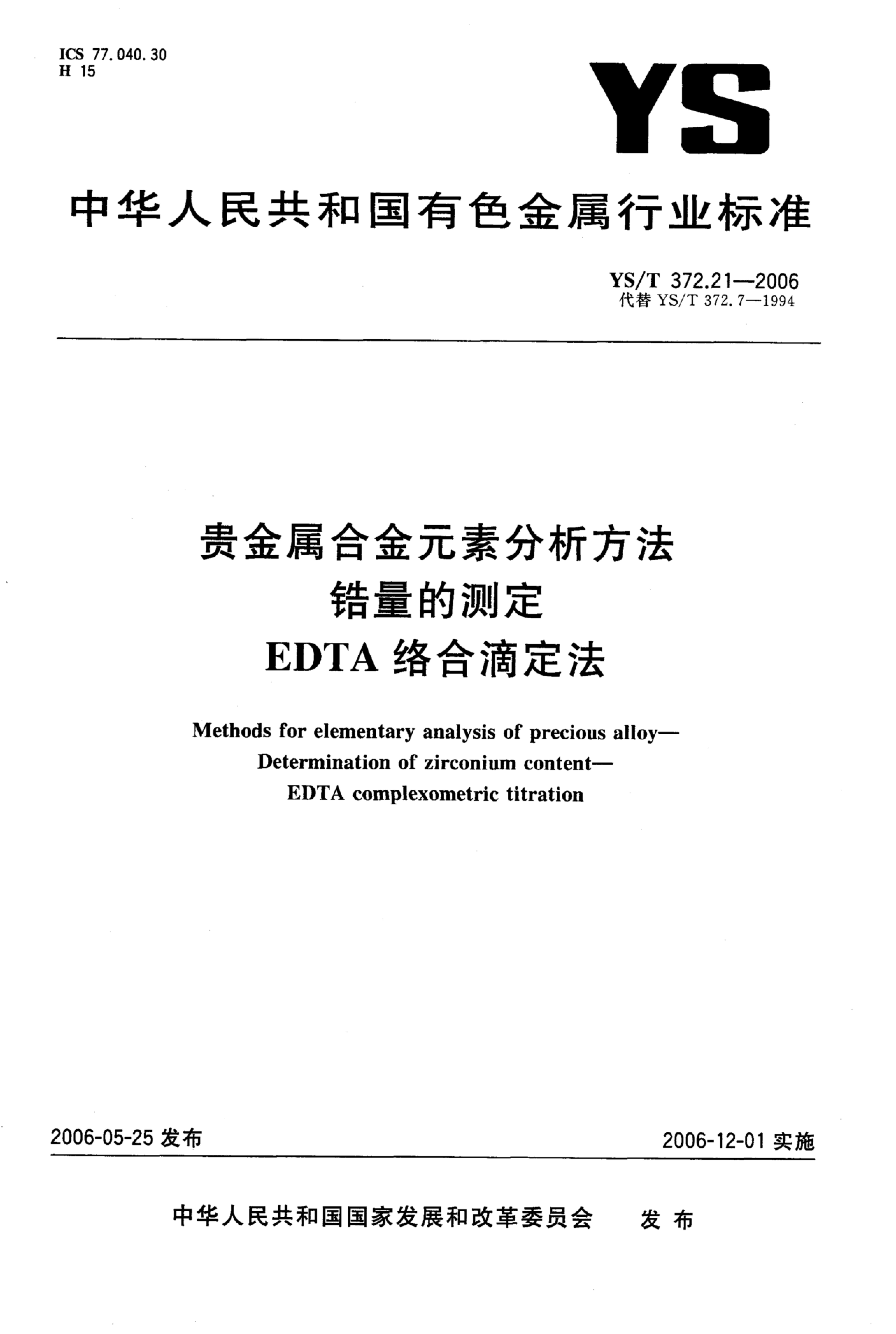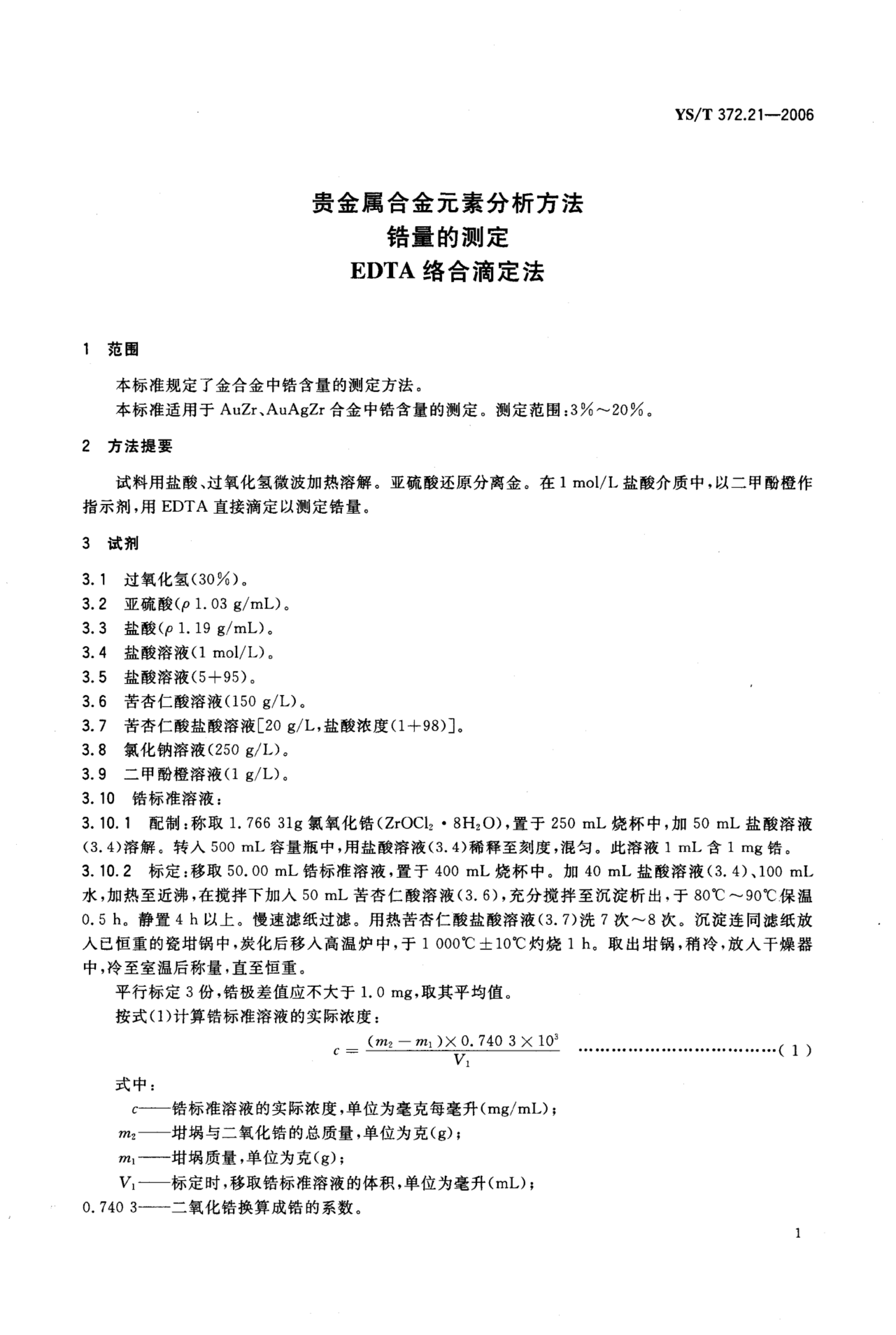 YS/T 372.21-2006 贵金属合金元素分析方法 锆量的测定EDTA络合滴定法