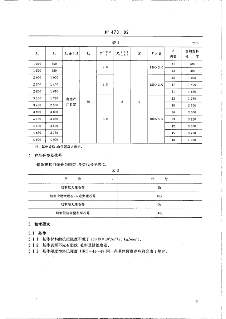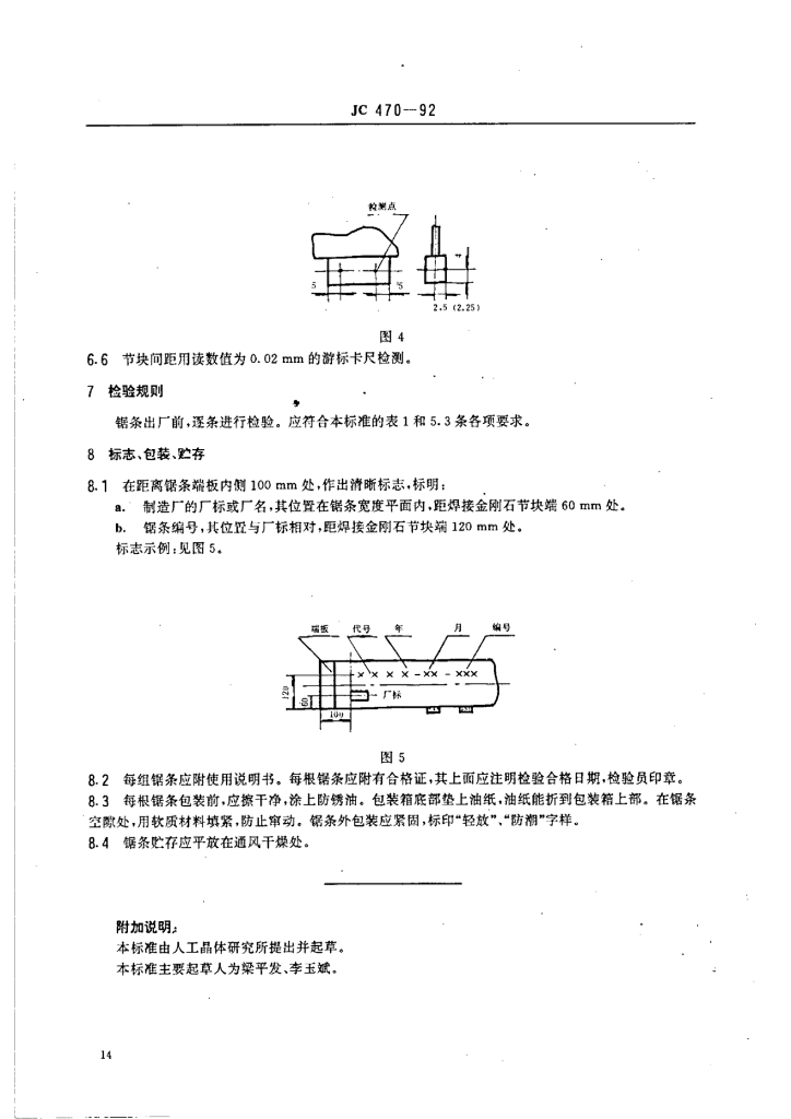 JC/T 470-1992 加工非金属硬脆材料用节块式金刚石框架锯条