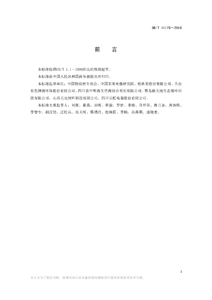 中国物资再生协会、中国家用电器研究院、格林美股份有限公司、大冶有色博源环保股份有限公司、四川省中明再生资源综合利用有限公司、青岛新天地生态循环科技有限公司、山西天元绿环科技有限公司、四川长虹电器股份有限公司