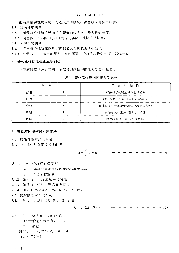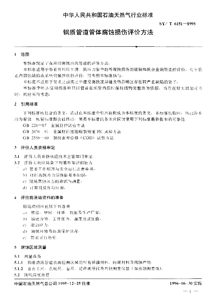 SY/T 6151-1995 钢质管道管体腐蚀损伤评价方法