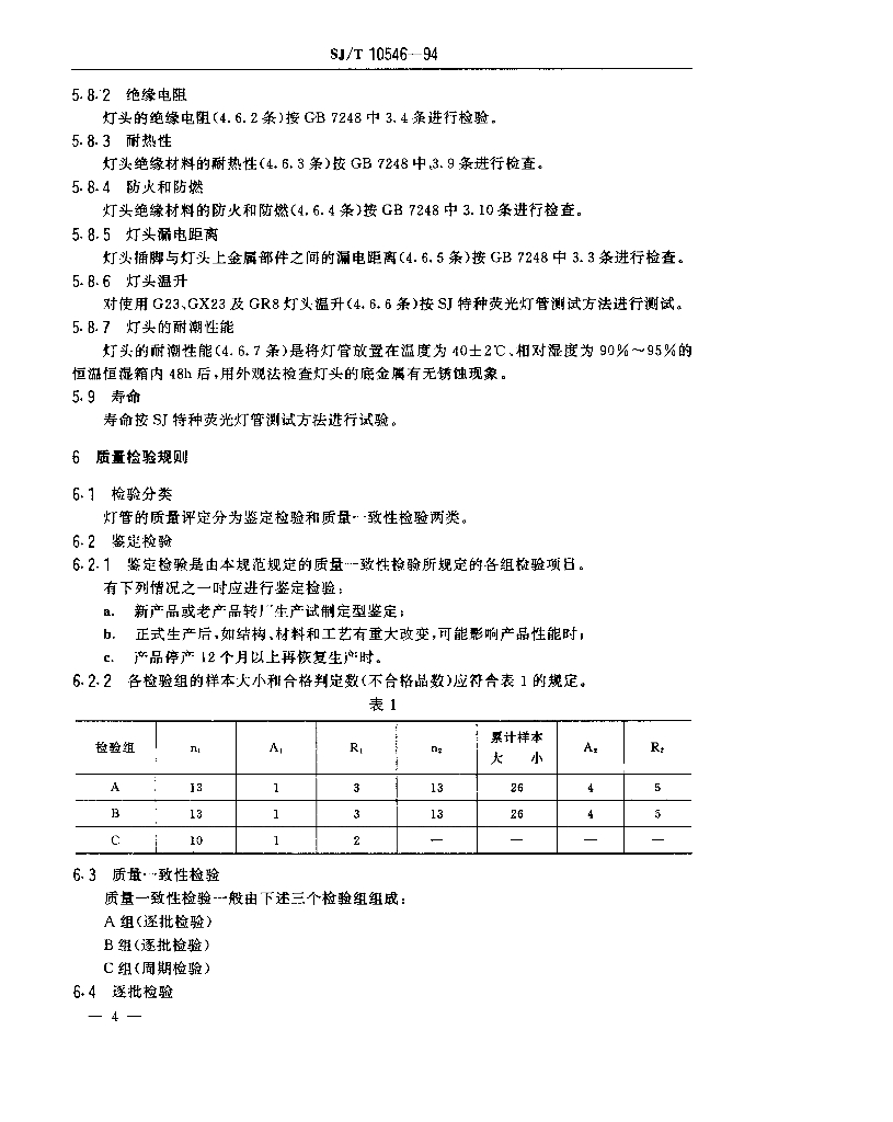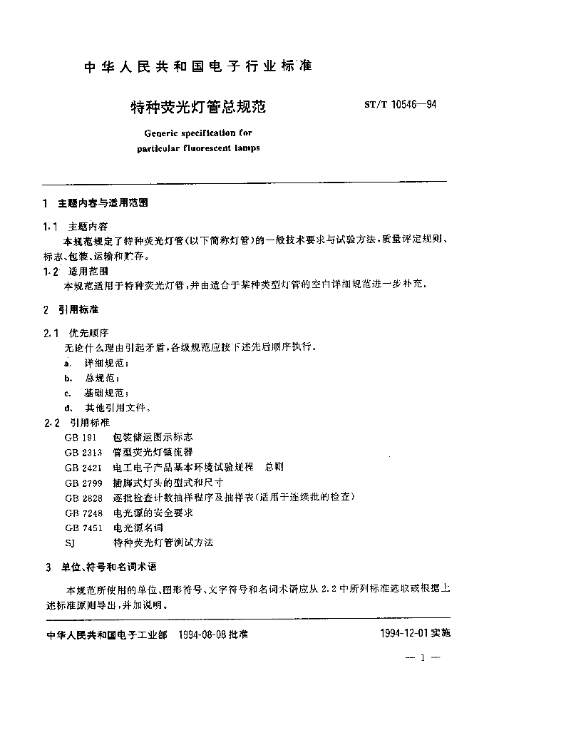 SJ/T 10546-1994 特种荧光灯管总规范
