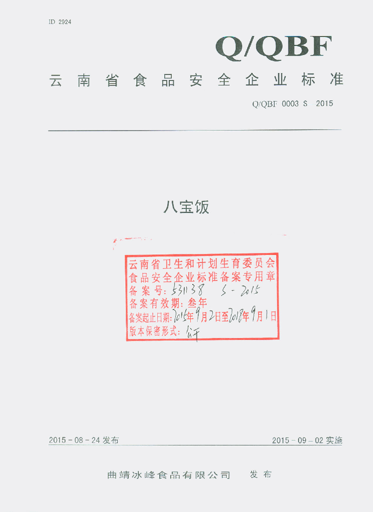 Q/QBF 0003S-2015 曲靖冰峰食品有限公司 八宝饭
