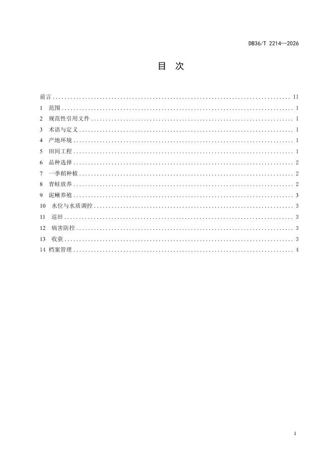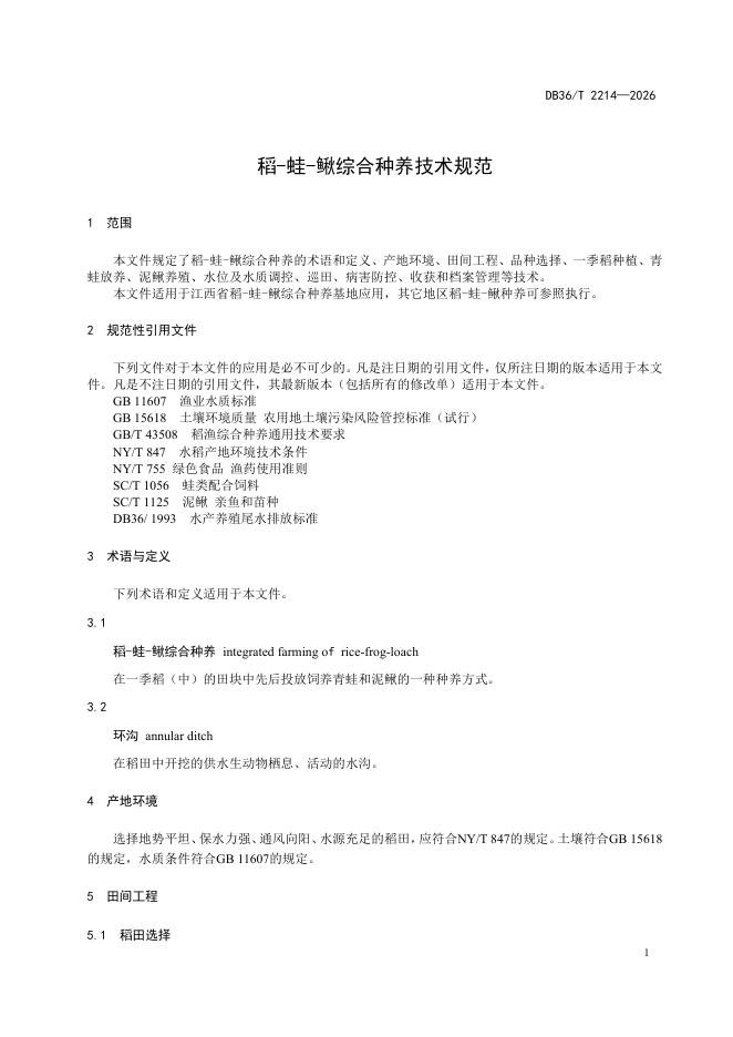 DB36/T 2214-2026 稻-蛙-鳅综合种养技术规范