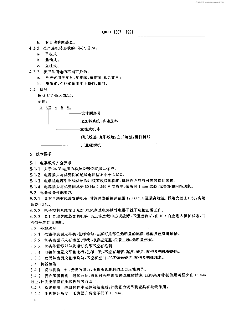 QB/T 1307-1991 工业缝纫机疏缝缝纫机机头