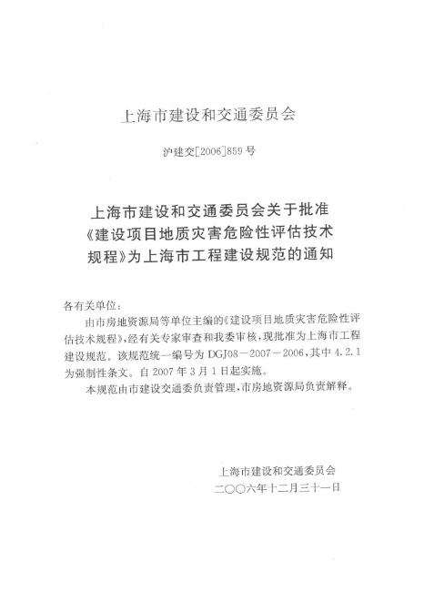 DGJ 08-2007-2006 建设项目地质灾害危险性评估技术规程