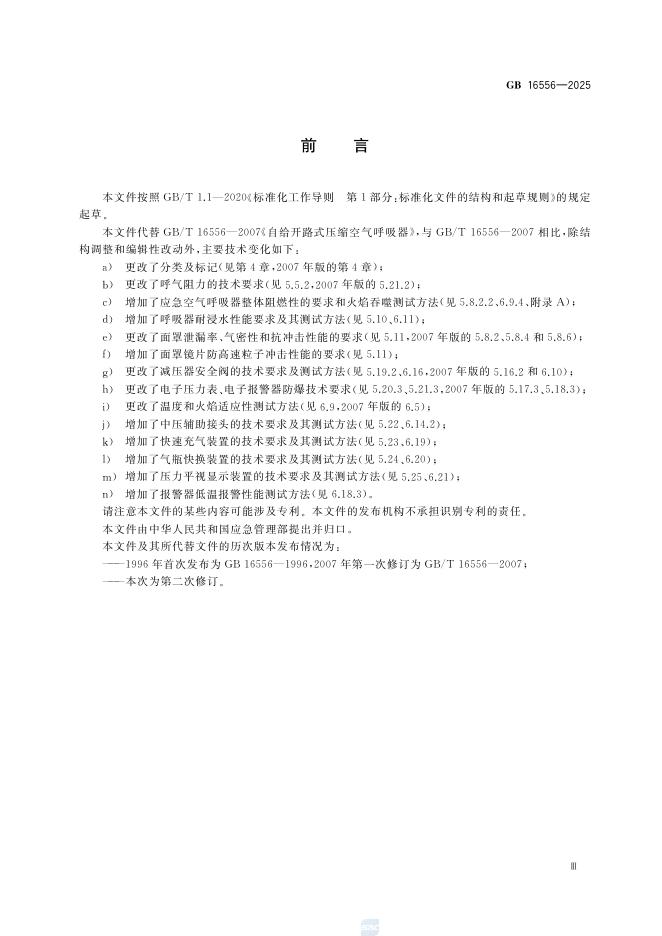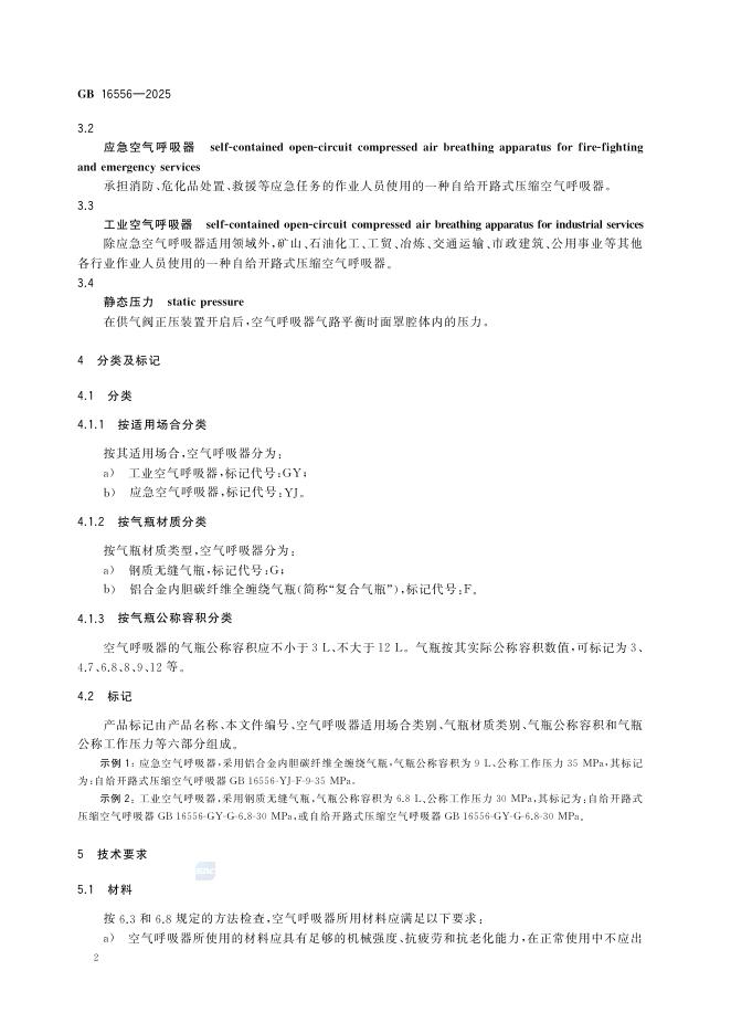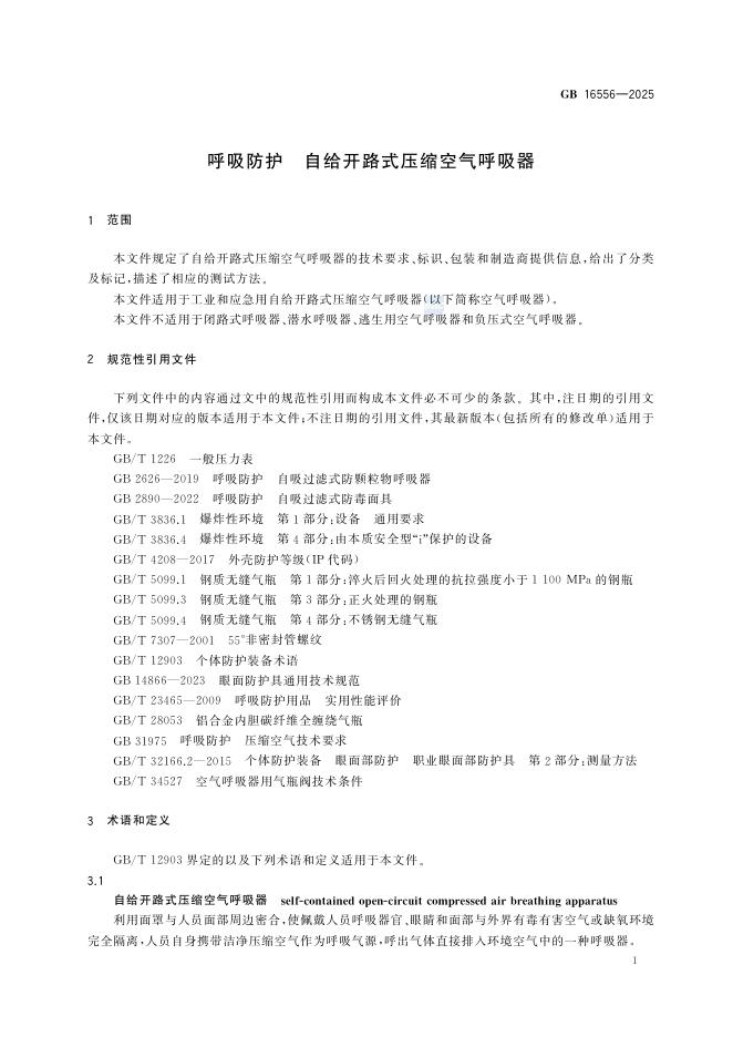 GB 16556-2025 呼吸防护 自给开路式压缩空气呼吸器