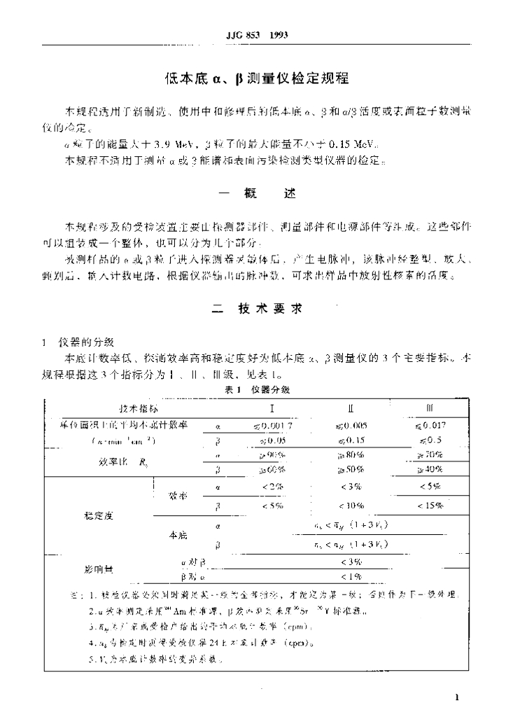 JJG 853-1993 低本底α、β测量仪检定规程