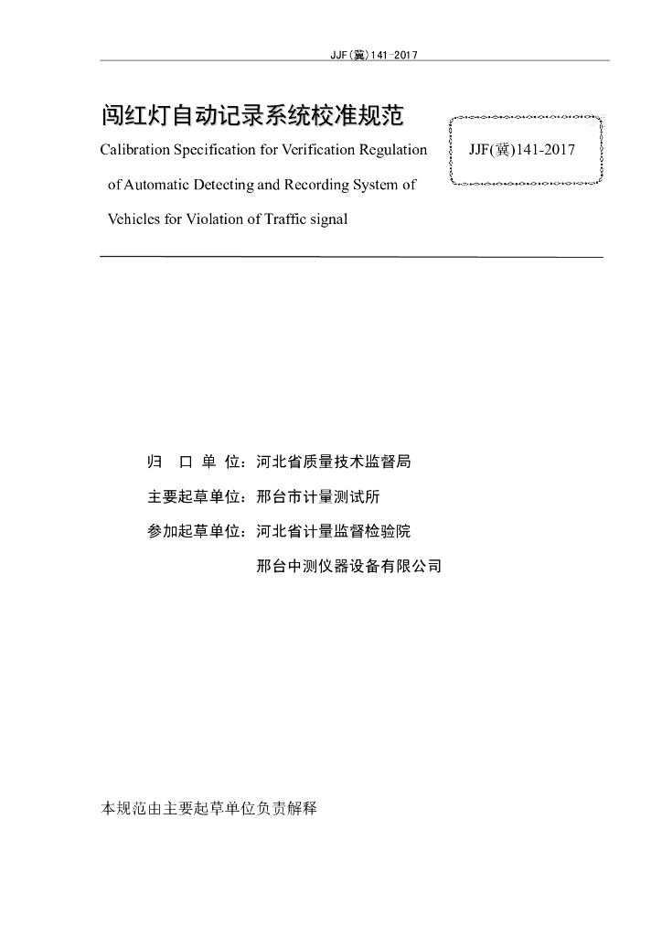 JJF(冀)141-2017 闯红灯自动记录系统校准规范