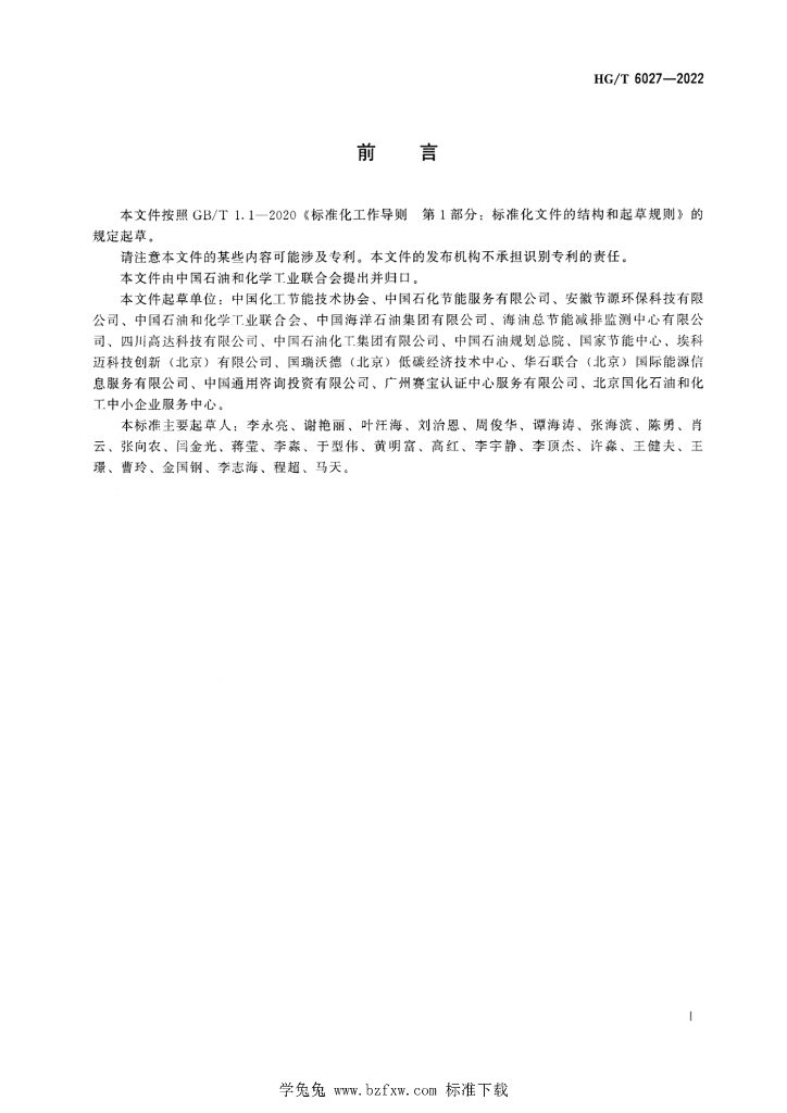 中国化工节能技术协会、中国石化节能服务有限公司、安徽节源环保科技有限公司、中国石油和化学工业联合会、中国海洋石油集团有限公司、海油总节能减排监测中心有限公司、四川高达科技有限公司、中国石油化工集团有限公司、中国石油规划总院、国家节能中心、埃科迈科技创新(北京)有限公司、国瑞沃德(北京)低碳经济技术中心、华石联合(北京)国际能源信息服务有限公司、中国通用咨询投资有限公司、广州赛宝认证中心服务有限公司、北京国化石油和化工中小企业服务中心