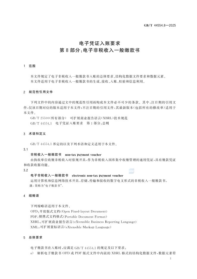 GB/T 44554.8-2025 电子凭证入账要求 第8部分:电子非税收入一般缴款书